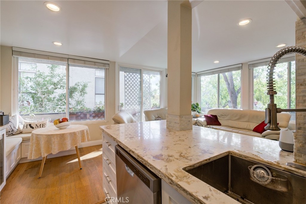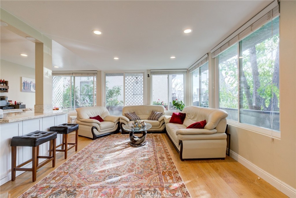 VERY MOTIVATED SELLERS!! Take a look at this spectacular, sun filled, front facing contemporary condo in prime area of Westwood that is tucked away on a quiet street. This unit is stylishly and completely remodeled with blonde hardwood floors in the living room and the updated fireplace with marbles which match it perfectly. Kitchen is entirely remodeled with new cabinets, quartz counters and stone backsplashes. The recessed lights just add to abundance of natural light that comes in through wall to wall new windows with double panes. Large wrap around balcony outside is perfect to enjoy the breeze and crisp green views. Master bedroom has a remodeled bath with Spanish Porcelanosa tiles and the den is converted to a bedroom. Other features of the unit are newer A/C and in unit stackable washer dryer. The building is well maintained and has a nice lobby, accessible elevator and there are monitored security cameras. This exceptional condo is within walking distance of many restaurants and shops of Westwood, close to UCLA, Google’s new West LA Campus, and Century City. Schedule your private showing for Saturday or Sunday from 10:00 am-2:00 pm!