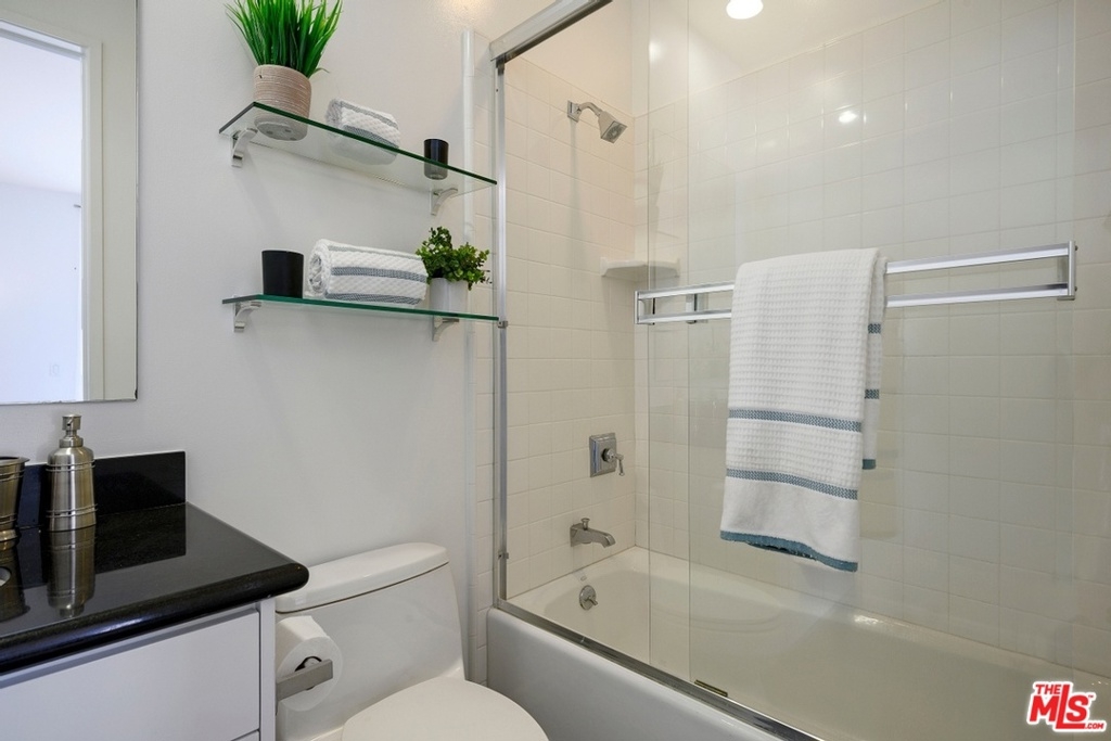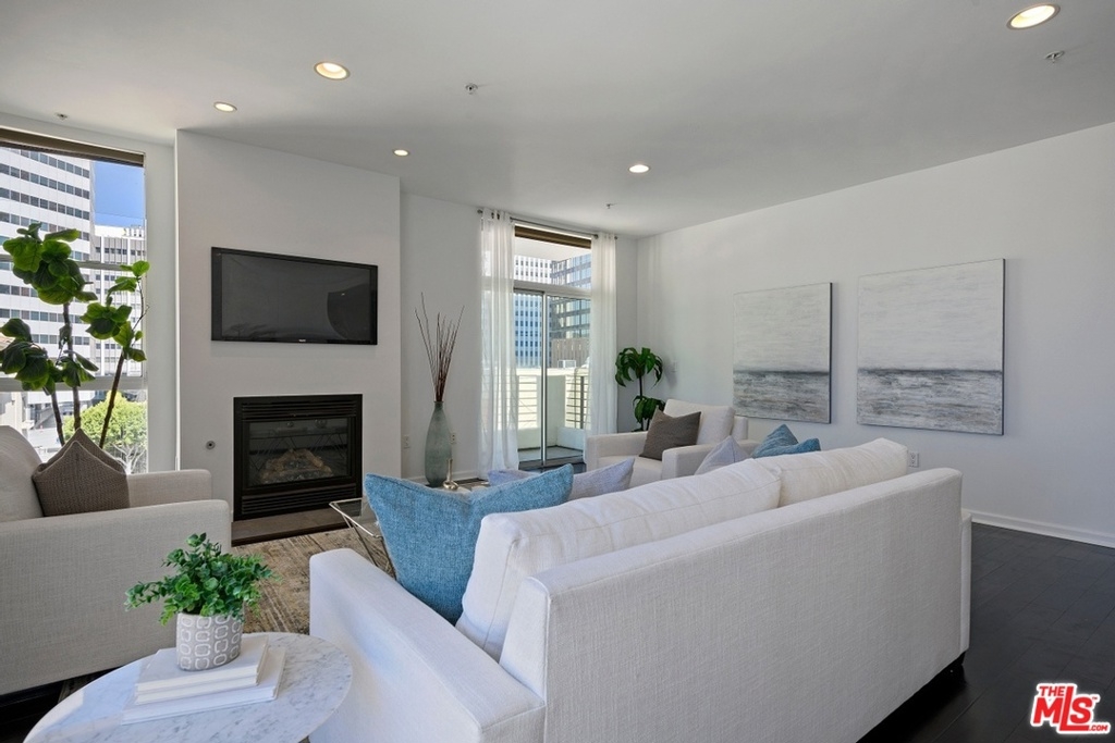Stunning, contemporary style condo with direct access from elevator to unit, built in 2007. Sun-filled unit with city and treetop views and one common wall. This elegant unit features high ceilings, recessed lighting, 2 bedroom suites, office/den area, powder room, laundry room and central air/heat. Spacious living room with fireplace and balcony. The gourmet kitchen is equipped with granite countertops, tiled backsplash and stainless-steel appliances. Master bedroom with 2 walk-in closets, en-suite bathroom with separate tub and shower. Freshly painted throughout and brand new carpet in bedrooms. Prime Westwood location close to UCLA, Century City, shops, restaurants, markets, theaters and freeway access.