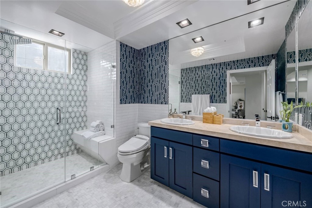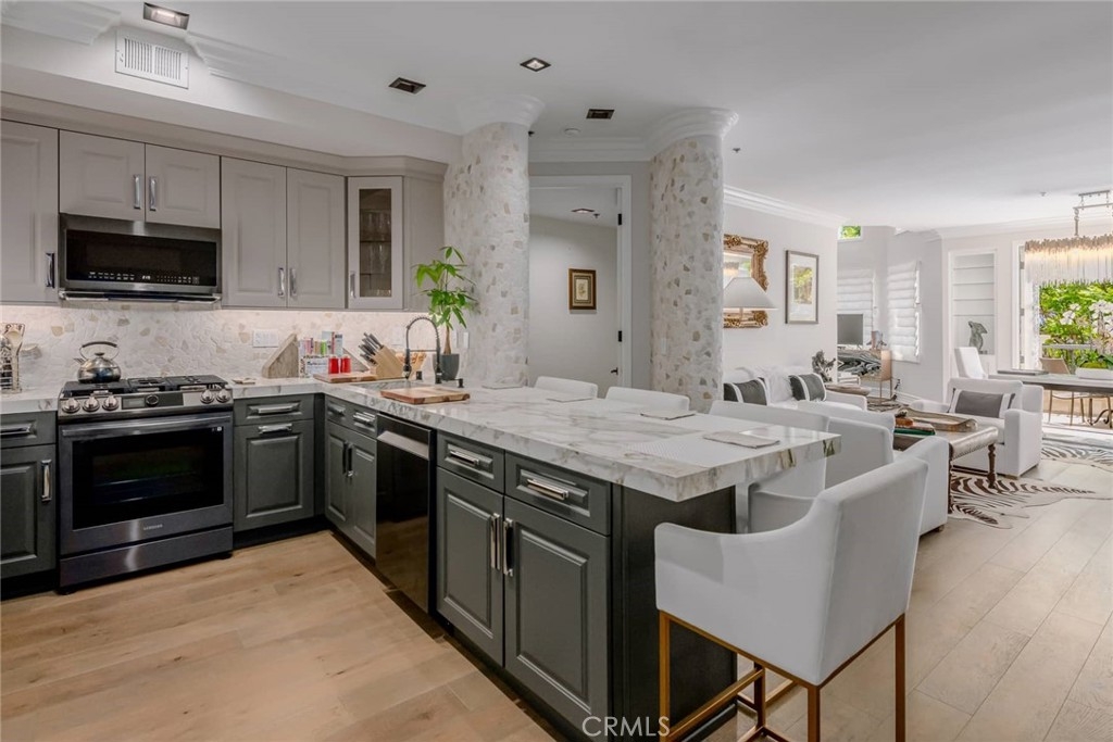 Stunning brand new renovation! This two story penthouse is the ultimate urban retreat. Located centrally to Beverly Hills, Century City, Westwood and Santa Monica. This magnificent home features two master suites and top of the line hardwood flooring throughout the living space. Kitchen features custom cabinets, brand new stainless steel appliances and top of the line porcelain countertop with integrated porcelain sink and marble backsplash. Extraordinary upstairs master suite encompasses the entire second floor with a huge walk-in closet and 400 sq ft of outdoor living on the expansive patio in a garden-like setting. The master bath is beautifully updated with an oversized tub and separate shower. The spacious downstairs master suite features high end designer carpet and an ensuite with a large shower with beautiful hand made tile and marble. The kitchen flows effortlessly into the large light filled living room, dining room and den. High-end designer light fixtures, recessed lighting and reclaimed wood architectural accents set the perfect mood for peaceful modern living.