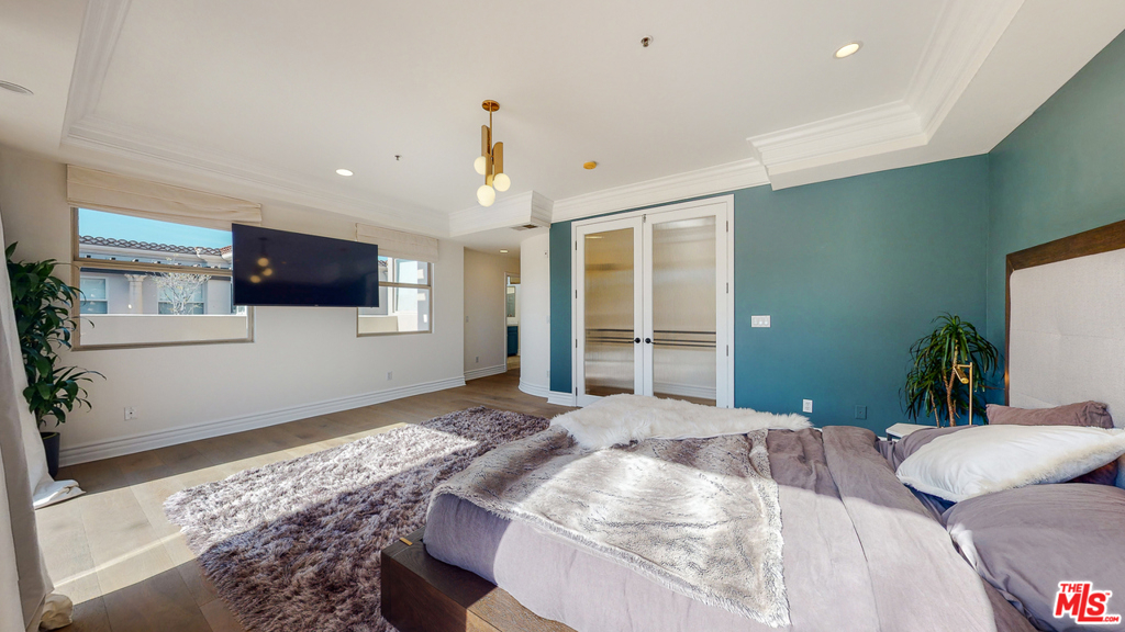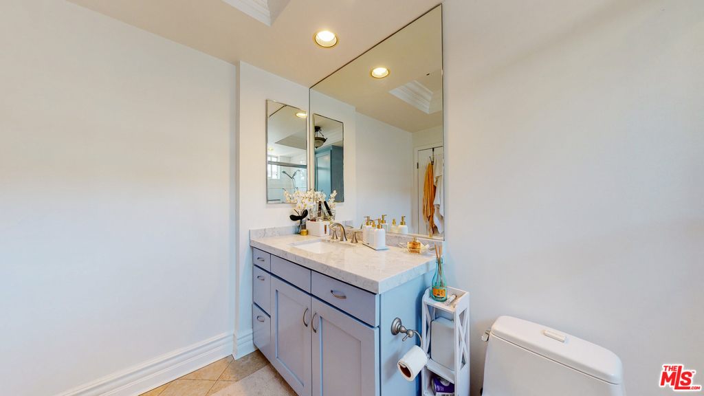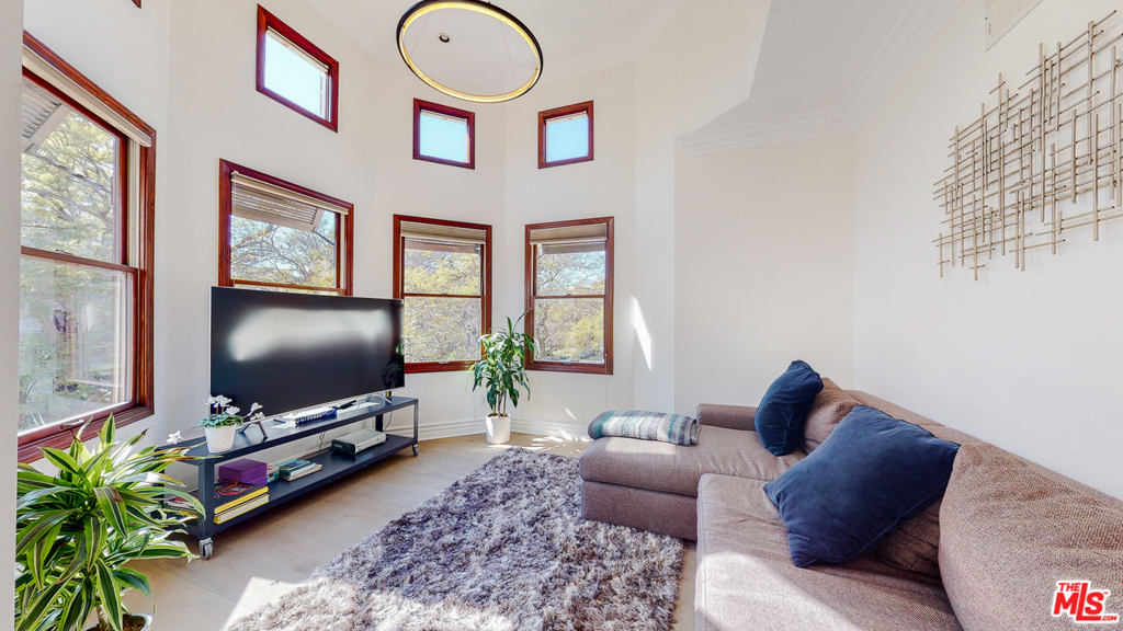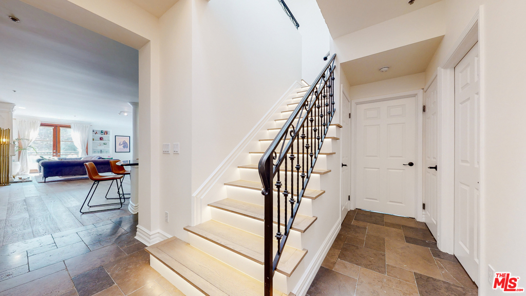 Welcome home! We are proud to present this stunning exquisitely remodeled 3 bedroom, 3 bathroom front facing two-story PENTHOUSE w/ Private ROOF TOP DECK in Prime Westwood Location. Approximately 2,100 sqft , this rare unit has a dramatic two-story formal entry w/skylights,open floor plan, plenty of natural light,high ceilings, recessed lighting, plenty of storage, two master suites, large walk-in closets and owner's own design romantic calacatta marble fireplace. Living room french doors open into a balcony. This unit also comes with 3 car parking!
