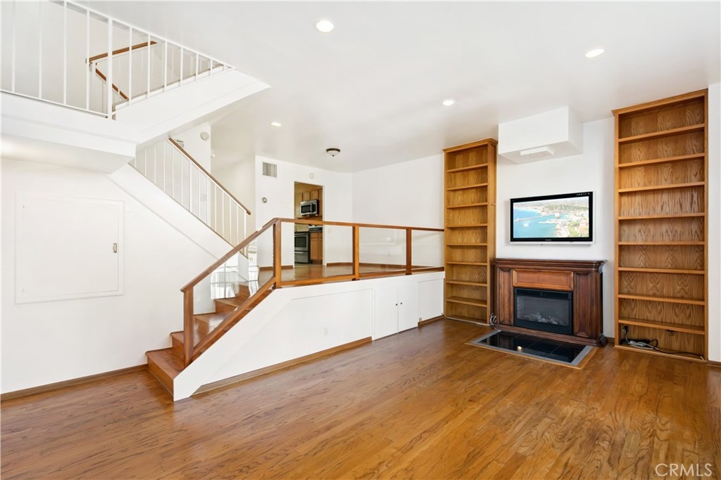 Welcome to this one of a kind split-level open floorplan townhouse in desirable Westwood! A brick walkway leads you by potted plants to your new home where you’re welcomed by tile and rich hardwood floors on the mid-level floor and a well equipped kitchen with stainless steel appliances, granite countertops and charming backsplash. A double glass doors welcome you to a bonus room, perfect for a home office or children’s play room. Walk down to the first floor, where built in bookshelves encompass a carved wood gas fireplace. Double french doors lead you to a private terrace to enjoy your morning coffee and soak in soothing California sunshine. The top floor living quarters host three quiet bedrooms with hardwood floors and the master suite features a large walk-in closet and its own en suite bathroom with sauna/steam enabled shower. Other amenities include in-unit laundry, two side by side parking spaces and private rooftop deck with sweeping city views. Located approximately 5 minutes from UCLA and near Santa Monica, Beverly Hills and Century City, don’t miss this one of a kind townhouse!