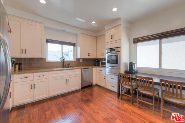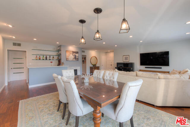 Top Floor Corner Unit. Remodeled/renovated 2BR + 2BA with modern/contemporary high-quality finishes. Large master bedroom w/spa-like master bathroom & 2 large walk-in closets. Quartz counter-tops, hardwood floors, LED recessed lighting & soft touch light switches throughout. Pre-wired for cable, internet, HDMI throughout. Full entertainer's bar. Gourmet chef's kitchen with tons of storage space & built-in stainless steel appliances. Front-facing unit. Top of hill skyline views & sunlight filled (W/S/N exposure). Balcony w/direct gas line for bbq. Tiled fireplace. Open flow floorplan. Double-pane windows and sliding doors. Plantation shutters. High end finishes & fixtures. SxS parking. Extra garage storage room. Heated pool, Jacuzzi & sundeck. Secure access building & gated garage. Fully equipped exercise gym with sauna. Dedicated bike room. Renovated lobby. Professionally maintained w/ample reserves. Located in highly rated school district. Mere minutes to Westfield Century City Mall.