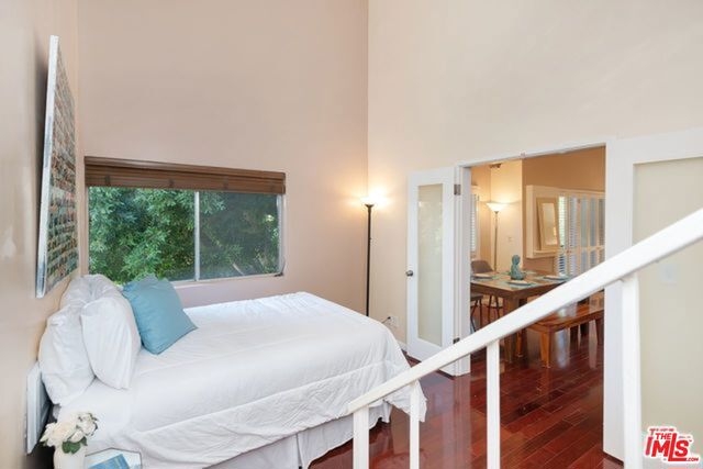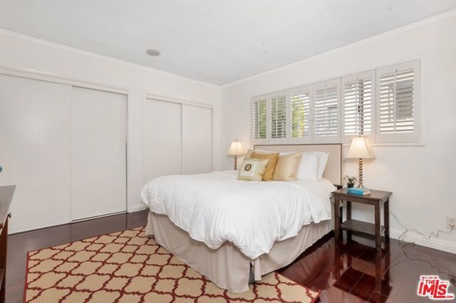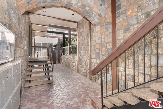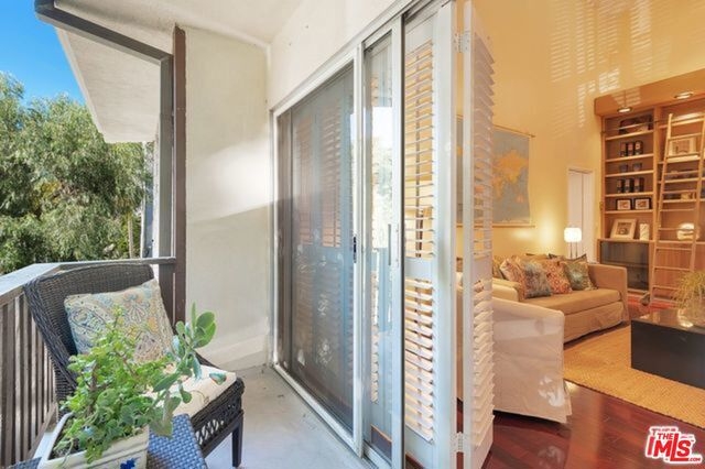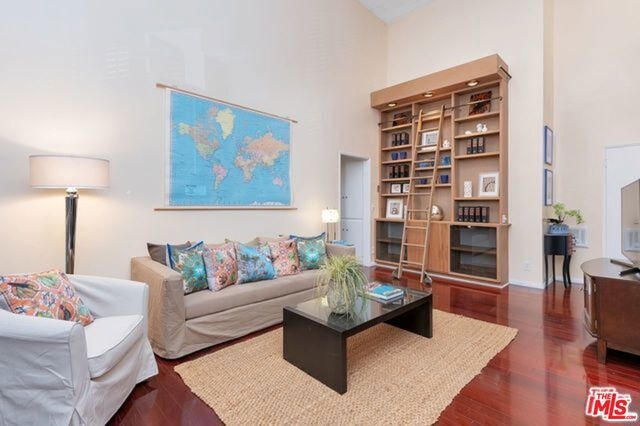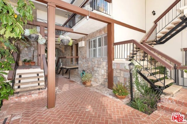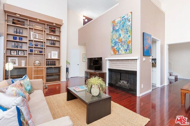 This move-in ready two bedroom, one and three-quarter bath penthouse condo boasts a bonus loft and soaring two-story ceilings. This light and bright front corner unit offers a large balcony and tree top views. Entertain guests in a spacious living and dining area with hardwood floors throughout, plantation shutters, a fireplace and built-in bookshelves. The large kitchen features granite counters, a tile backsplash and offers tons of cabinet space. Each bedroom is en suite and privately located on opposite sides of the condo. You will enjoy this charming courtyard complex with low homeowner's dues and side by side parking. Close proximity to UCLA, Westwood Village, 405/10 freeways and more.