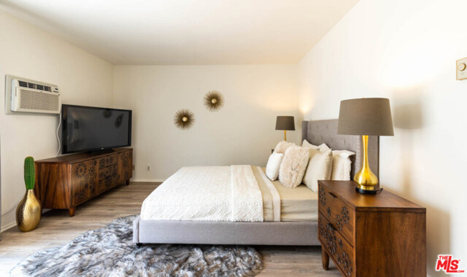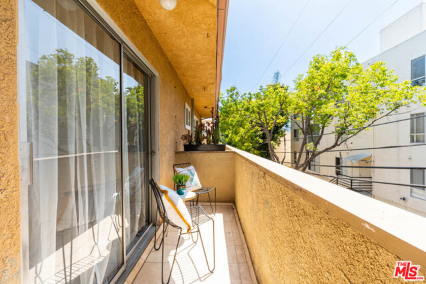 Sun-filled top floor 2 bedroom, 2 bathroom condo in a charming 16-unit courtyard building. Beautifully updated and move-in ready, the many upgrades include all new appliances, air conditioning in living room and master bedroom, fresh paint and brand new laminate floors. Living room with gas fireplace opens to dining area overlooking courtyard. Peaceful master suite with balcony, two closets and full bathroom. Spacious 2nd bedroom with large closet and recessed lighting. Updated 2nd bathroom with large shower. Two side by side secured covered parking spaces with enormous amount of storage. Pets are welcome, low $300/month HOA dues and nice community laundry room. Walking distance to great restaurants and shops, Westwood Village, near UCLA and top-rated Westwood Charter Elementary. Sophisticated Westside living at its best!