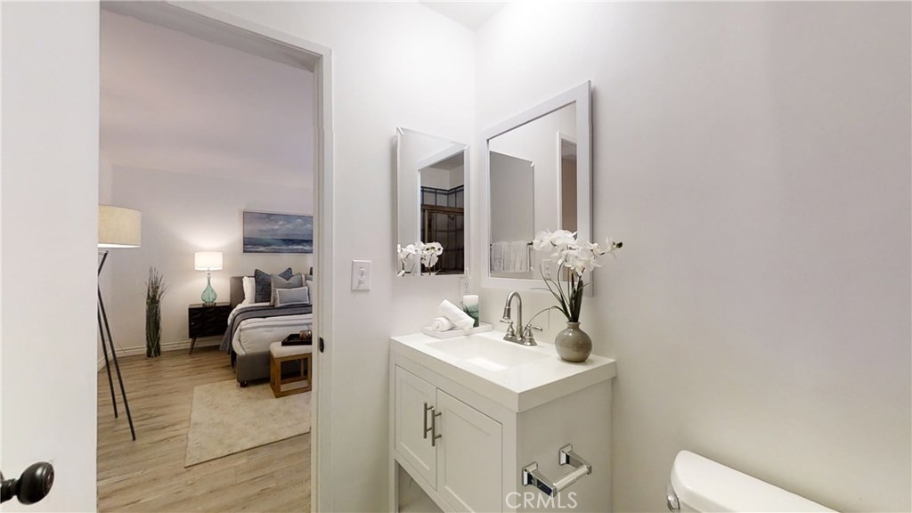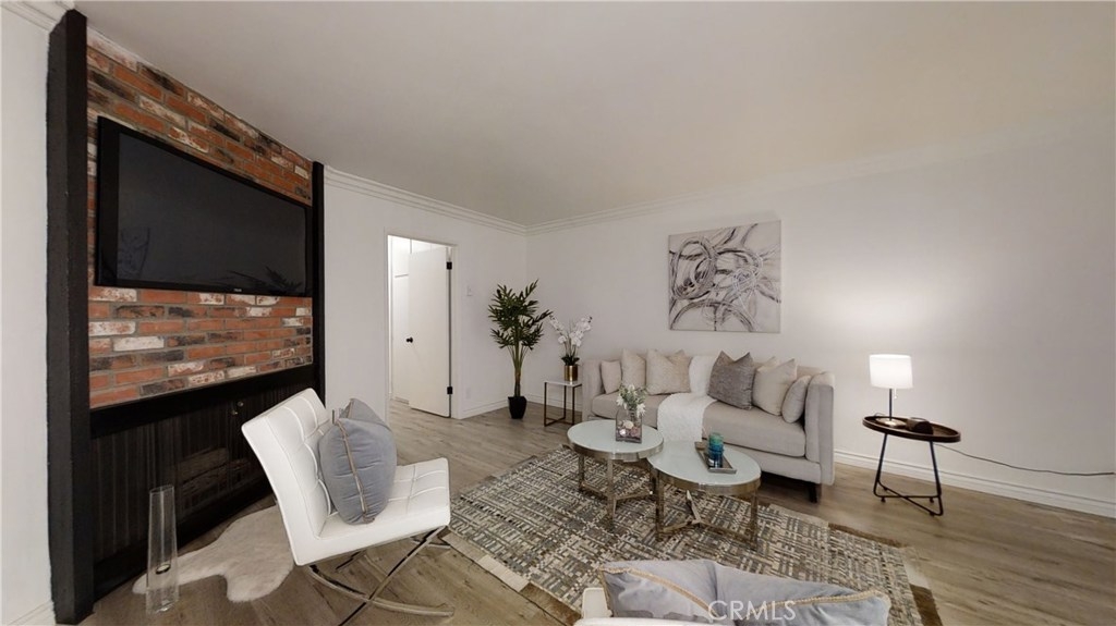 Completely Remodeled, Turn-Key & Absolutely Pristine! Top to bottom renovation completed just last month on this 2-bed,2-bath condo with new AC/heater, located in the heart of Westside. A courtyard garden paradise gives way to the well-lit family room designed for entertainment, featuring a classic red brick fireplace, new crown molding and baseboard, floor heater, and new wood-like flooring, which combine to lend a modern look. Kitchen sports remodeled cabinets with decorative edge detailing, newly installed granite countertops, stainless steel gas oven, and double-sink with pull-down faucet, for contemporary feel and commodity. Master suite retreat with convenient sliding door access to back balcony, ensuite bathroom, and private walk-in closet.Cozy guest room for family, roomate, or full-office space, with convenient access to 2nd bathroom across the hallway. Both bathrooms are tiled and showcase newly installed vanities and medicine cabinets, sliding glass bathtub/shower doors, and updated showerheads. Secured side-by-side parking spaces for two large vehicles, with storage unit and onsite laundry. Located in a safe upscale area, right next to 405 FWY and Santa Monica Blvd. Walking distance to shopping and entertainment centers with an array of exotic cuisines, and just minutes drive to UCLA campus, the spectacular Getty Center Arts Museum, 10 FWY, Santa Monica Pier, fashionable Bel-Air, and the Film Studios of Century City. Come see this wonderful Westside gem!