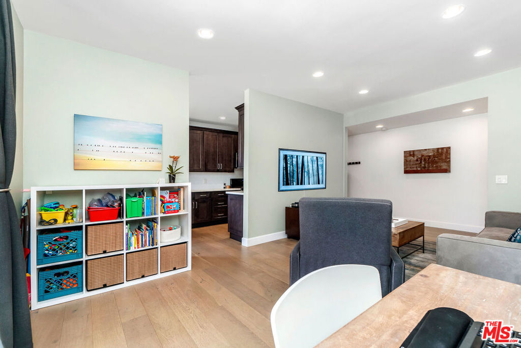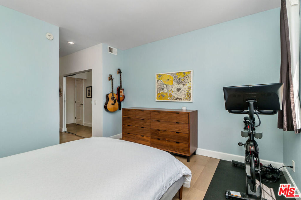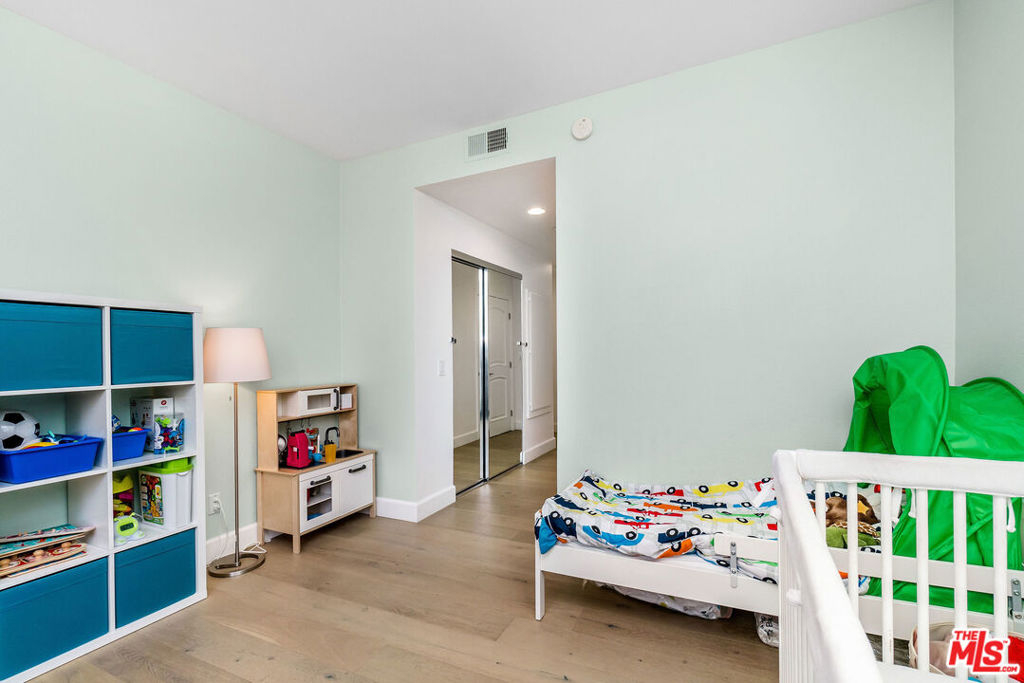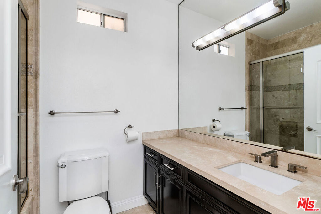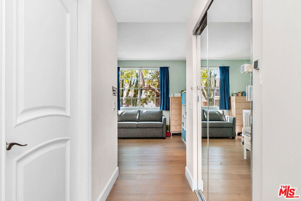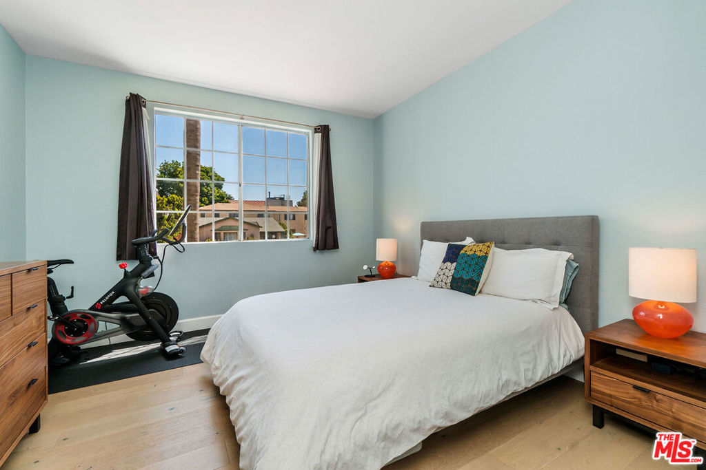 An abundance of natural light creates a feeling of warmth and comfort throughout this beautiful single-level condo featuring an inviting layout with wide oak plank flooring, high ceilings and recessed lights. The recently remodeled gourmet kitchen is a cook's dream with quartz countertops, subway tile backsplash, stainless-steel edge trim, breakfast bar, built-in microwave, striking dark cabinetry with soft closing cabinets/doors and a black stainless-steel large capacity French door-in-door smart Wi-Fi refrigerator with ice maker and water filter. Off the kitchen and spacious living room is an oversized double balcony perfect for al-fresco dining or morning coffee. Two spacious bedrooms with en-suite bathrooms are on opposite sides of the unit, ample closet space and a large walk-in closet in the primary bedroom. Other features include an in-unit laundry closet, Nest thermostat, Yale touchscreen smart keyless door lock, central AC and two parking spaces. This charming private and gated 15-unit building features a courtyard with a soothing fountain and an incredible rooftop terrace with 360 breathtaking views. Located on a tree-lined permit parking street located near Hillcrest Country Club, Rancho Park Golf Course, Cheviot Hills Recreation Center, Westfield Century City, Fox Studios, Google office campus, Beverly Hills and Westwood Charter Schools.