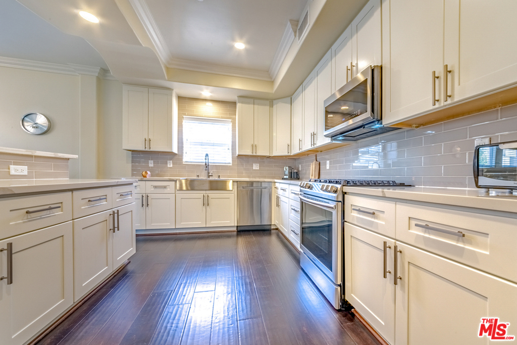 Don't miss this beautifully remodeled front facing 3 bedroom condo in West LA with an excellent floor plan. All 3 bedroom are spacious in size and 2 of the bedrooms have French door providing ample sunlight. Tastefully remodeled kitchen as newer appliance, cabinet and subway tile back splash reflecting current trend. Good size balcony facing the front of the building is an excellent space to relax and enjoy. Complex is conveniently located just minutes to many fine dining, shopping center, entertainment and FWY.
