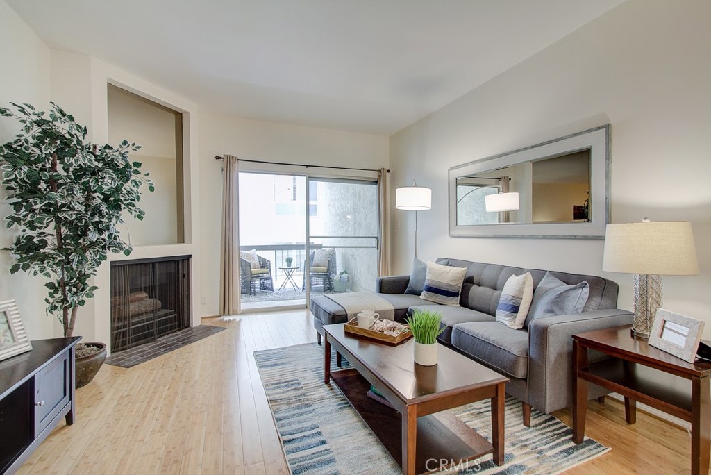 Welcome home to this lovely Westwood 1 bed 1 bath condo steps from UCLA!! Featuring bamboo flooring in living room with fireplace, spacious balcony and wet bar. Separate dining area that can also be home office. Kitchen with granite counter tops and white cabinets. Bathroom features tub and shower, tons of storage including walk in closet in master bedroom with private balcony. Well maintained building comes with gated parking.