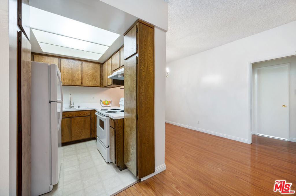 Bel Air West is located in a beautiful and quiet Westwood neighborhood near the northwest corner of UCLA. A stone's throw to campus & Westwood Village make this an unbeatable location. The units are surprisingly large for the area and the building has recently undergone a major renovation. With exceptionally large units in this accessible neighborhood, the Bel Air West provides wide sliding doors, cozy fireplaces, and dozens of upgrades over the years. This 2BR/2BA condo with mid-century modern design features is an upper floor back unit and has the seclusion and quiet needed for home office or study. A special feature is the extra-large balcony which spans the width of the unit, with the square footage of an extra bedroom. Mature pine trees flank the back exterior giving the space the feel of a secluded hideaway. Enjoy mid-century design features such as the mirrored fireplace mantle, all-electric kitchen, and pass-through kitchen window. The primary bedroom includes an en-suite bathroom, dual sinks, and a walk-in closet as well as sliding door balcony access. Laundry room on the 3rd floor is located conveniently close to the entry. Gated, secure garage offers 2 assigned tandem parking spaces. This unit has been lightly renovated over the years so will be easy to envision custom-designing the home to your needs. Bel-Air West is 1 block from UCLA and a stone's throw away from all your favorite Westwood restaurants, cafes, and shops on a quiet residential street. Get all the amenities of your favorite residential neighborhood and the convenience of being next to campus and shopping.
