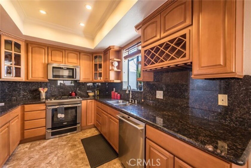 Beautiful 2 bedroom and 2 bathroom townhouse style corner unit features a recently remodeled kitchen and master bathroom. Spacious floor plan! Awesome location! Great amenities! The remodeled kitchen features newer cabinets, granite counters, tile floors, and stainless steel built-in appliances and fixtures. Open living and dining rooms feature high ceilings, hardwood floors and a floor to ceiling gas fireplace. One bedroom and bath are downstairs. The spacious master suite is located upstairs and features the remodeled master bath, walk-in closet, balcony, and a private office / bonus room. The master bath has double sinks, separate shower and tub, and the tub is a large-size soaking tub. Highlights include: extra walk-in closets and storage spaces, laundry inside the unit with a newer high-end washer & dryer, central air & heating, ceiling fans, recessed lighting, raised panel doors and much more. There are two secured parking spaces which are not tandem! This awesome unit is located in a great neighborhood with many restaurants, shops & transportation options nearby, including the Expo/Sepulveda station on the new Expo Light Rail.