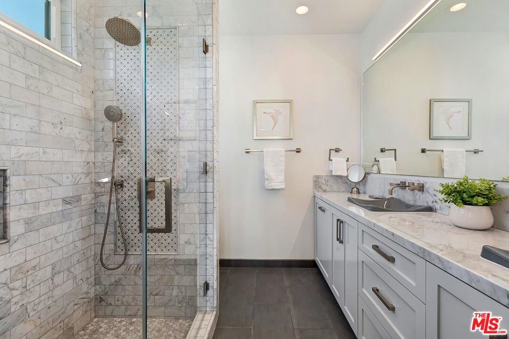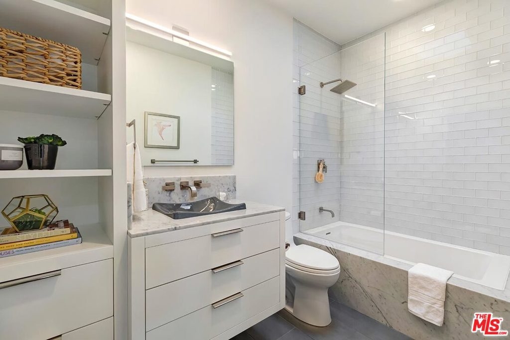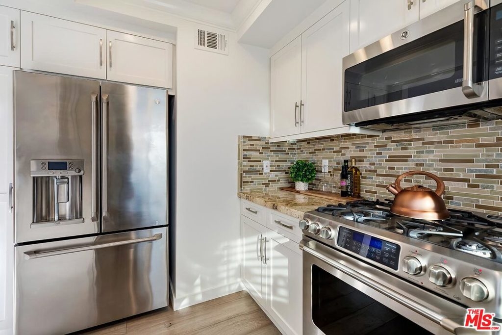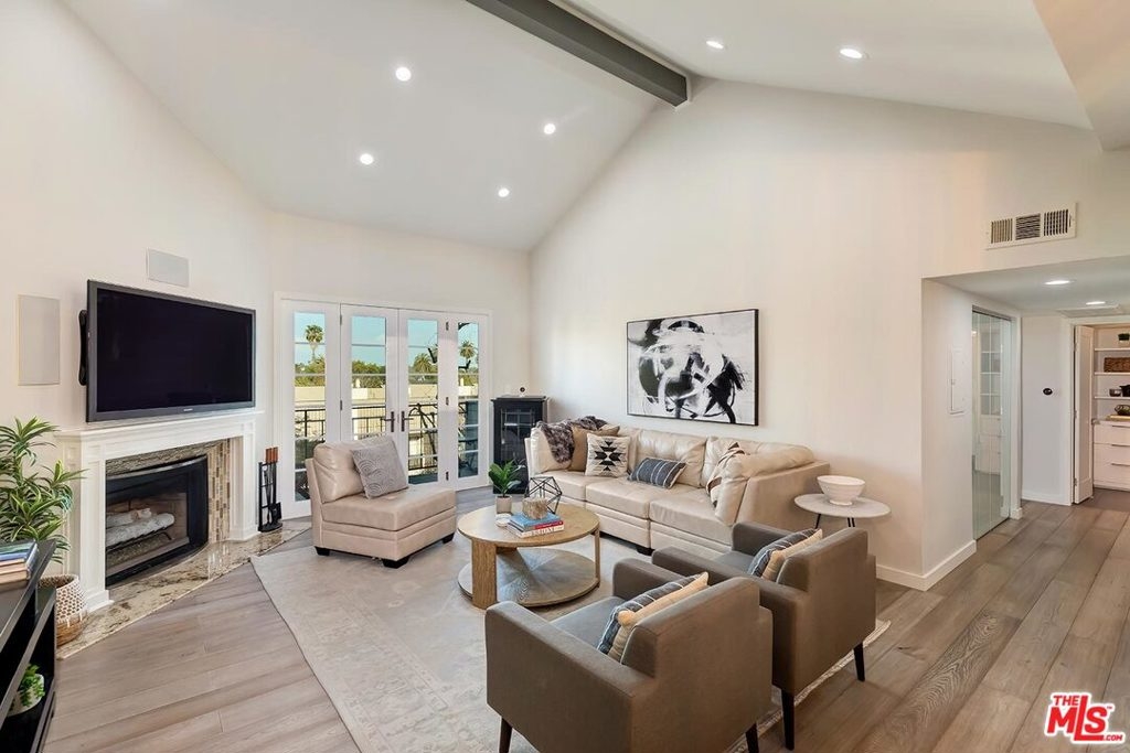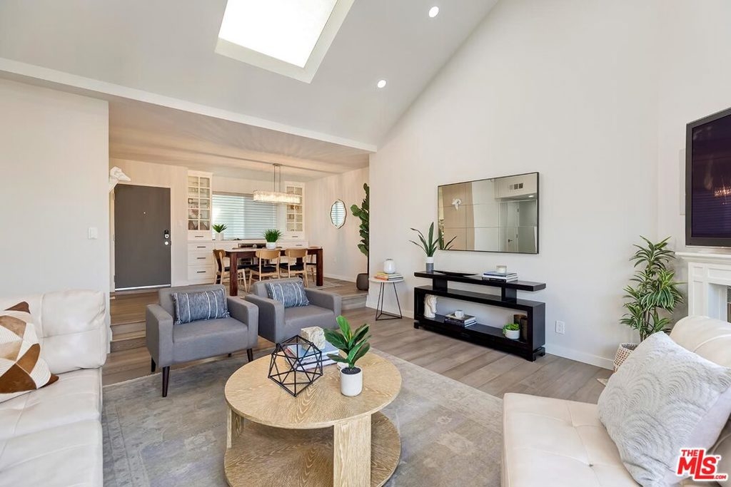 Modern Renovated Penthouse Condo in West LA near Westwood! No expense spared! Livingroom has vaulted ceiling w/ skylight showering space in light. Hardwood floors, recessed lights, fireplace, level 5 drywall finish with BM Regal Select paint & French doors that open to the private balcony w/ Century City views! Formal dining space has custom built-in cabinets for added storage & buffet serving w/ 2 wine fridges! Gourmet kitchen w/ granite counters, SS appliances & counter-to-ceiling tile. All new windows & French doors replaced in 2018 come w/ life-time warranty, & include remote-control Hunter Douglas blinds w/ BO shades. Large master w/ no common walls has vaulted ceiling, balcony w/ tree-top views, his & her California Closets, & amazing master bath w/ his & her sinks, & custom marble tiled shower. Guestroom picture window with skyline views! Guest bath w/ skylight, RHM cabinetry, and soaker tub encased in marble slab. Updated electrical includes new sub-panel & new wireless SMART Phillips switches. Inside laundry! Central HVAC! 2 side-by-side secured parking w/ storage, guest parking, and recently updated lobby w/ keyless video entry! Located in quiet 14-unit complex. HOA dues include water/trash, EQ insurance, cable w/ HBO+SHO, and internet! Great Westside Location! Surrounded by shops & restaurants! Near UCLA, Brentwood, Japantown!