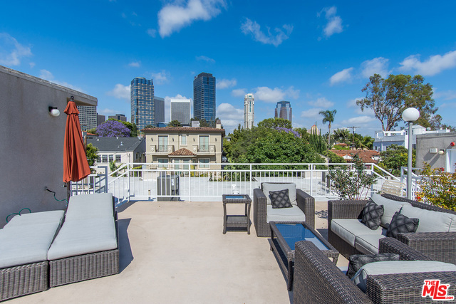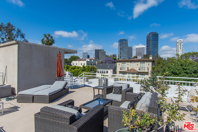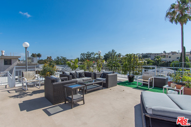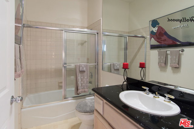 This 2 bedroom + 2 bathroom top floor condo is your wish list come true. Upon entering this rear north-east corner unit, you'll experience a feeling of privacy and tranquility. The en-suite master bedroom is a dream with its own balcony, walk-in closet, travertine counters, double sinks, skylight, spa tub, and separate shower. The guest bedroom has a balcony, 2 large closets and a full guest bathroom with marble counter top. This condo is conveniently located around the corner from the newly renovated Century City mall, and is close to the Fox Studios, UCLA, and Beverly Hills. Speaking of convenience, this condo also has inside laundry and 2 separate parking spaces. Additional features include plantation shutters, high ceilings, recessed lighting, crown moldings, and a marble bar and wood burning fireplace in living room. Building amenities include a rooftop deck with city views, lots of guest parking, and a building surveillance system.
