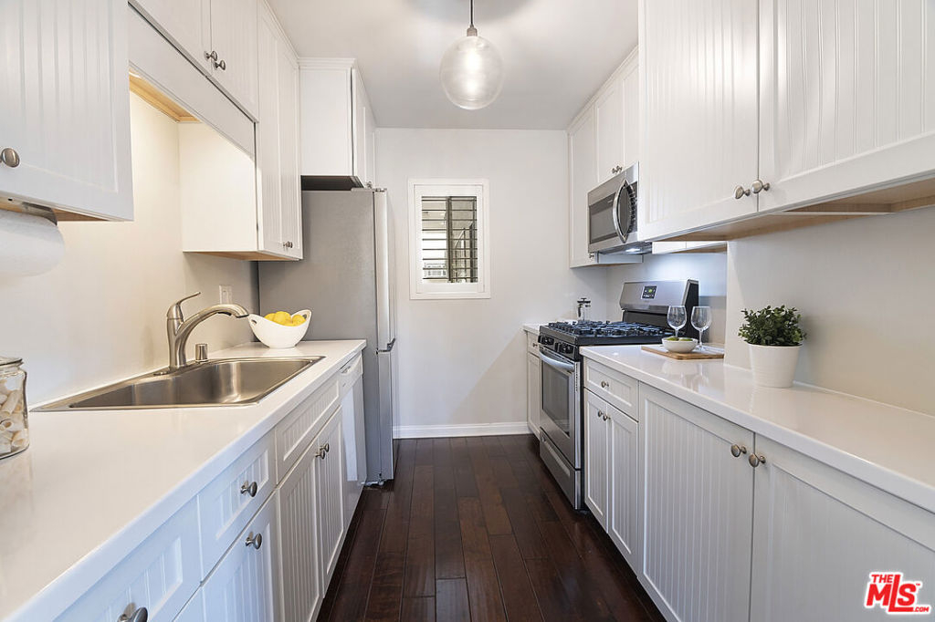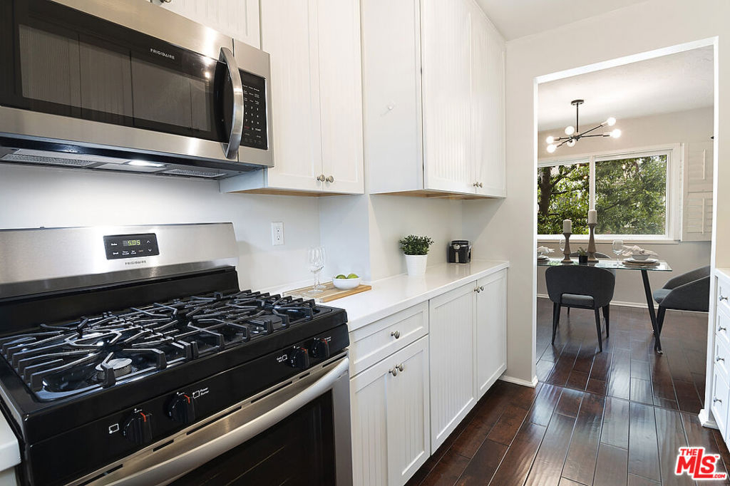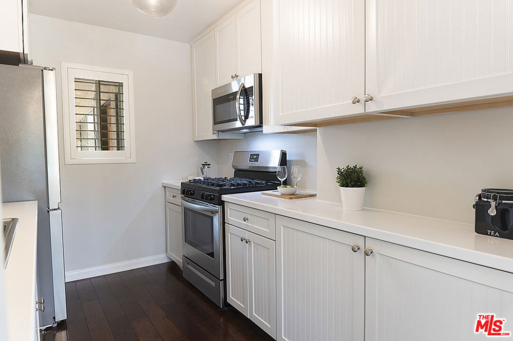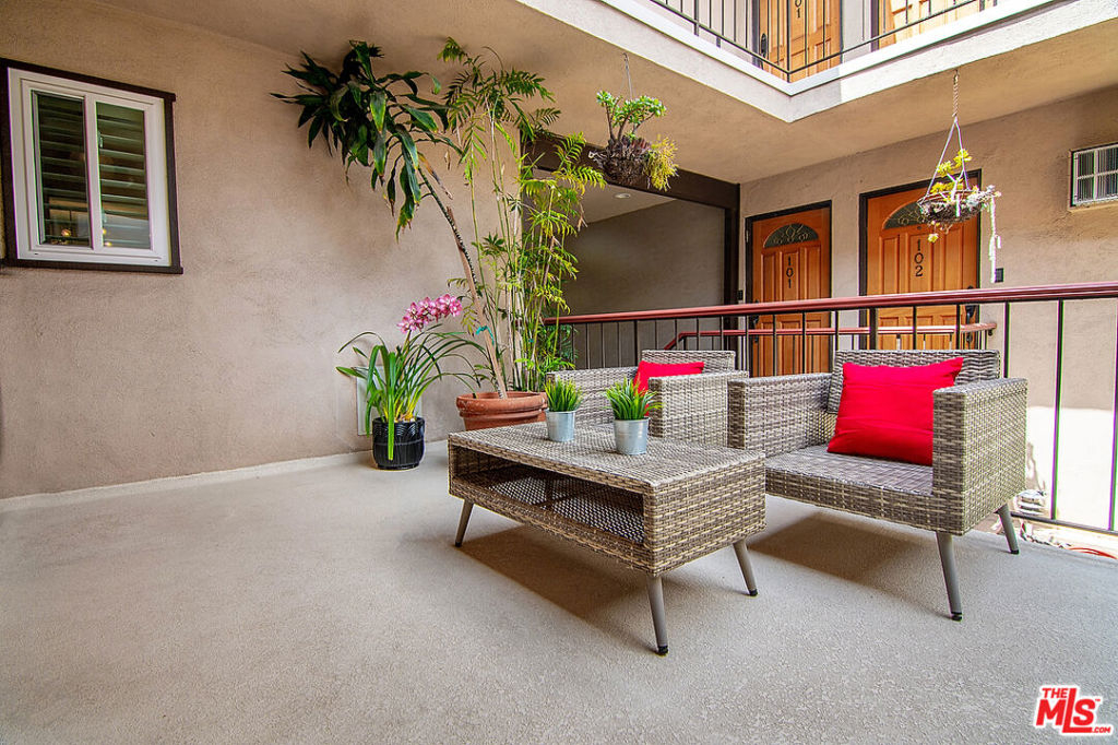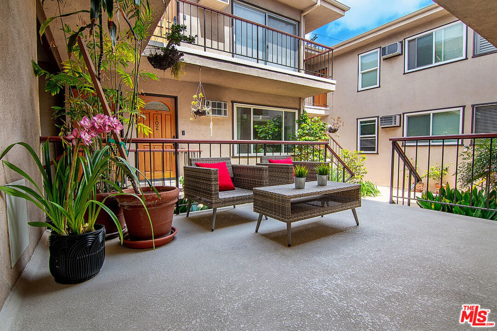 Beautifully remodeled 2 BD + 2 BA front facing corner unit located in pristine impeccably maintained complex in the heart of Westwood. This gorgeous light filled one level condo boasts an open floor plan with private balcony and views of the quiet tree-lined street. Interior features include spacious living and dining areas, large, newly installed premium windows, hardwood floors, fireplace, and tastefully updated kitchen complete with stainless steel appliances, sleek countertops, and lovely cabinetry. Both bedrooms are generously sized with new carpet and ample closet space. Exterior amenities include an attractive courtyard entrance, controlled access, guest parking, gated garage, extra storage and 2 side-by-side parking spots. Low HOA dues include earthquake insurance, water, trash, roof, and exterior maintenance. Tremendous value in an unbeatable location close to new Google campus, restaurants, shops, entertainment, parks, Westfield Mall, UCLA and the acclaimed Westwood Charter School District!