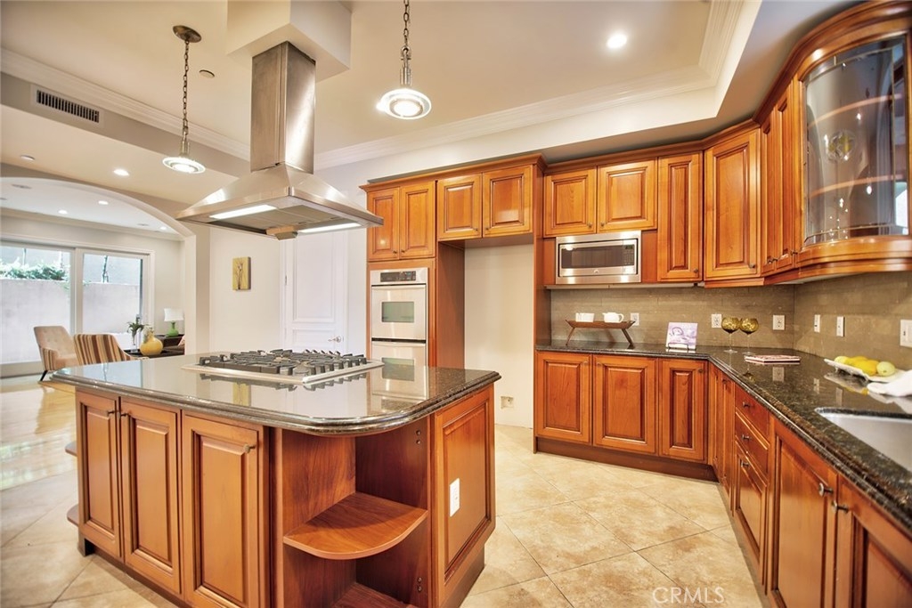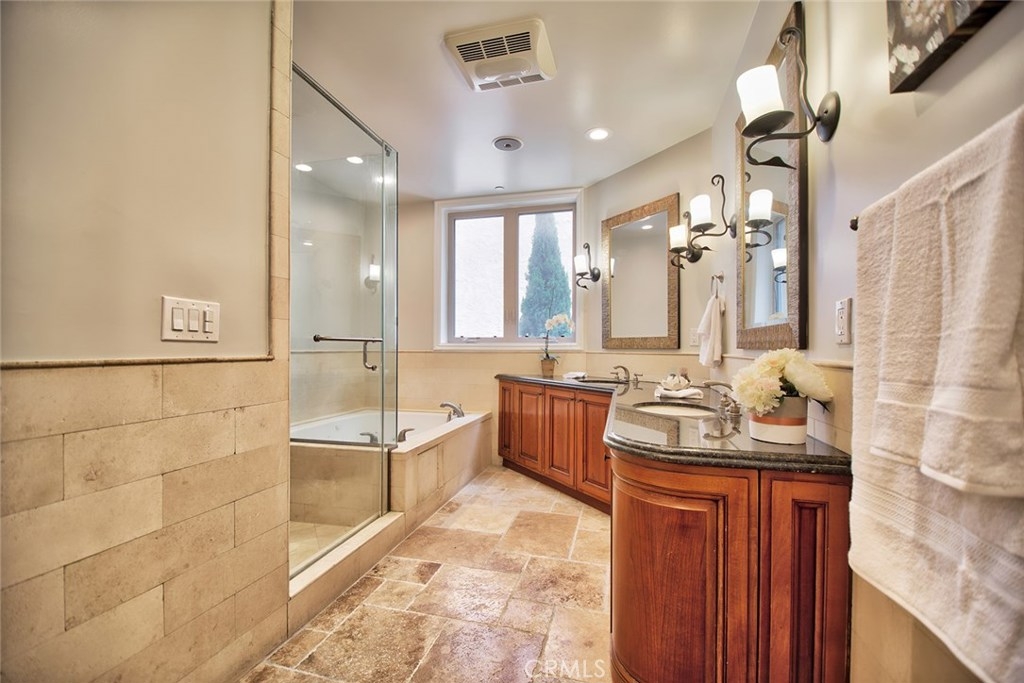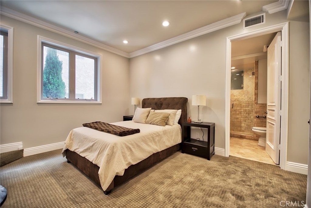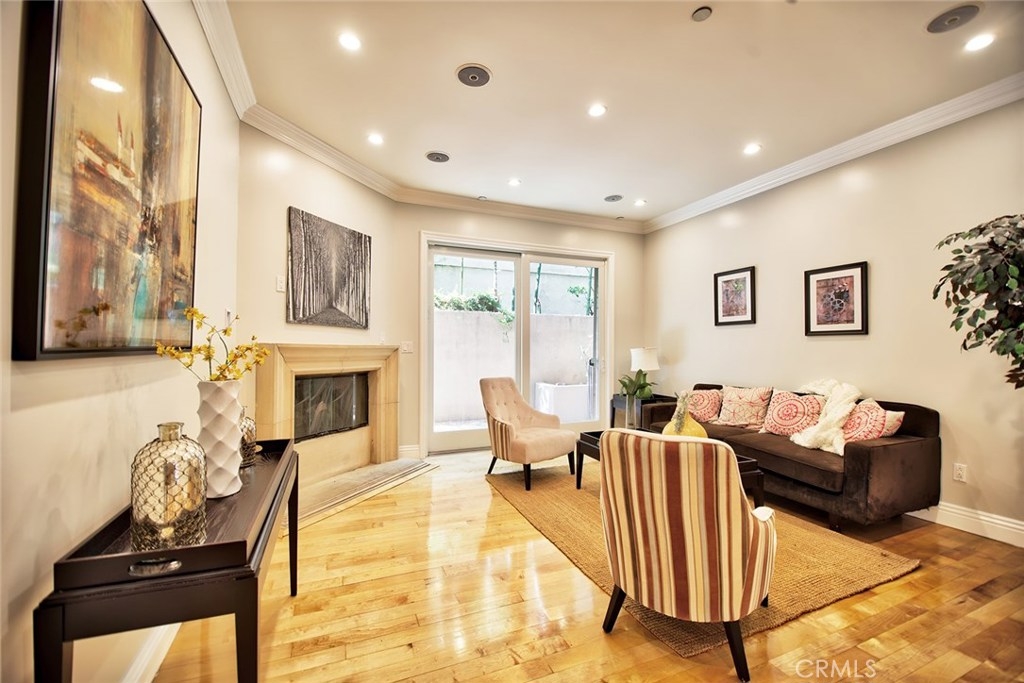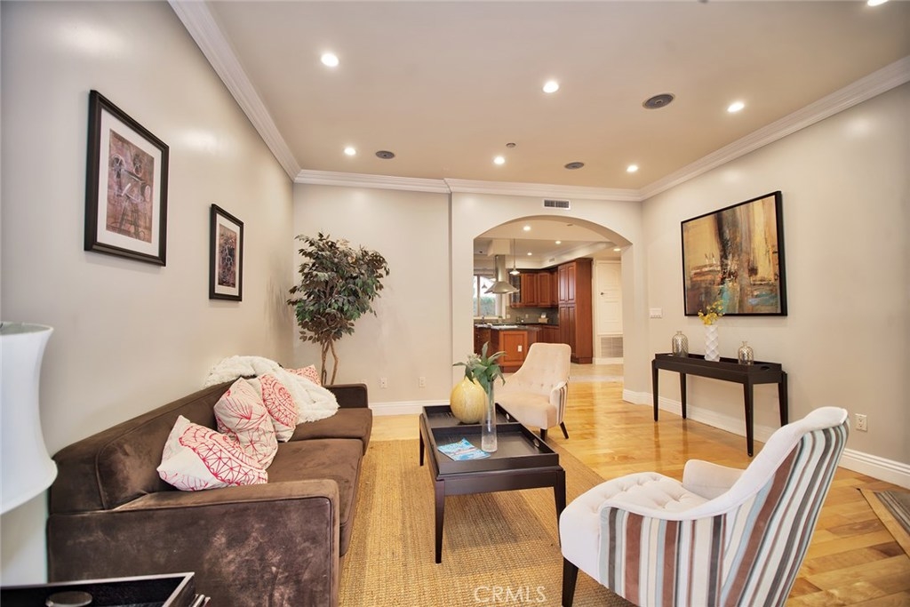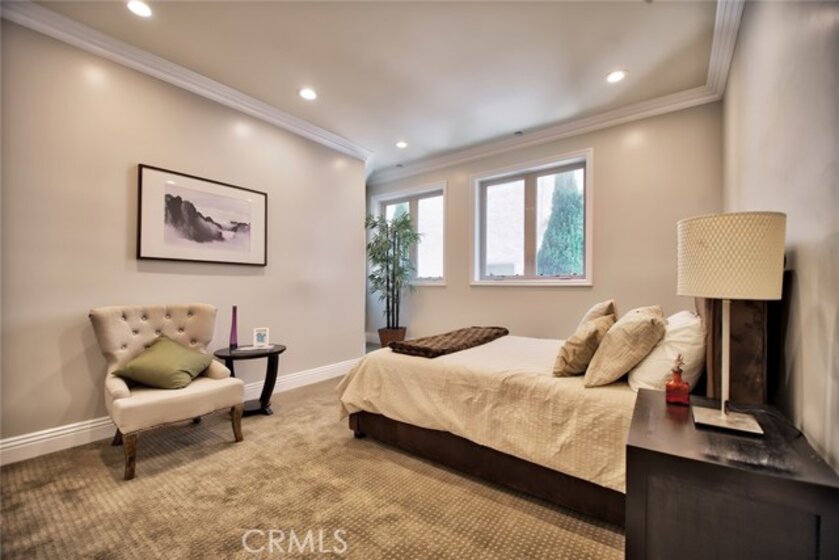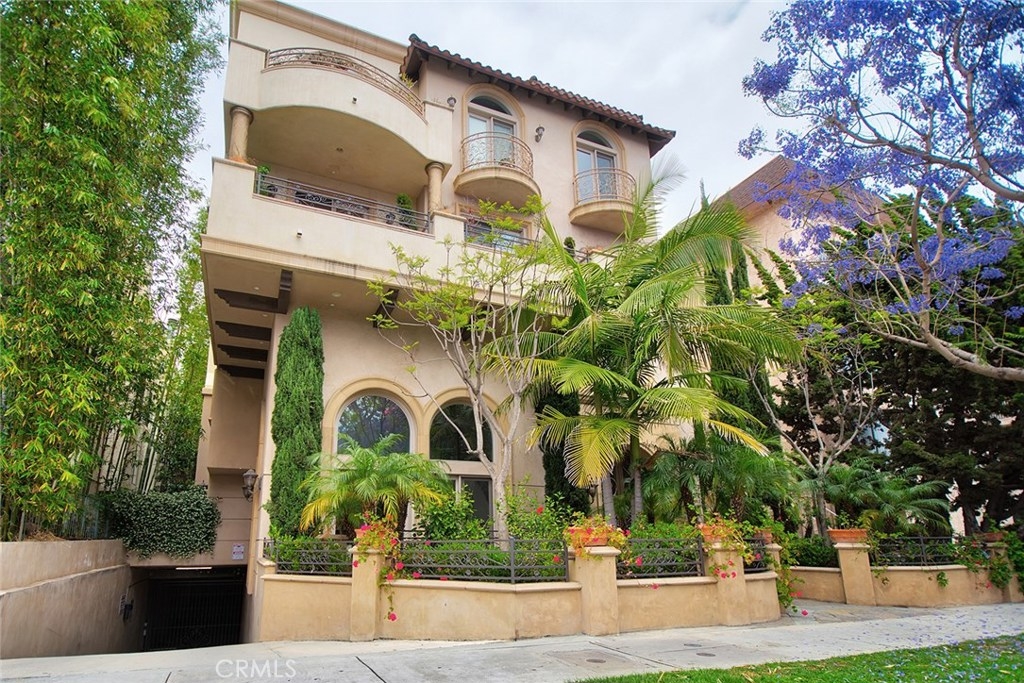 Gorgeous Mediterranean-style condo located in the Westwood/Century City area built in 2005 with no expense spared. Custom kitchen with island, ample cabinet space and granite counters. Vaulted ceilings, hardwood floors in the spacious living room, dining room and family room. Each bedroom has it's own attached bathroom and new quality carpet. Huge master suite with his and hers walk-in closets. Master bath with long dual vanity, shower and luxurious spa tub. Side patio that runs along the side of the unit and nice sized front patio as well surrounded by lush flowers and plants. 2 parking spaces in the secured parking area.