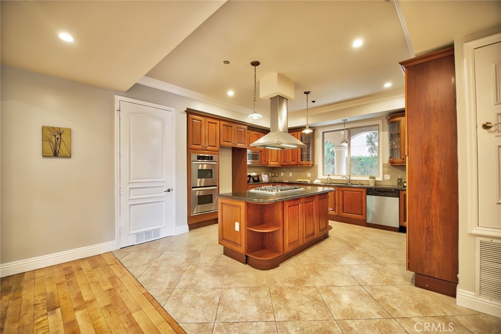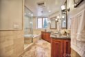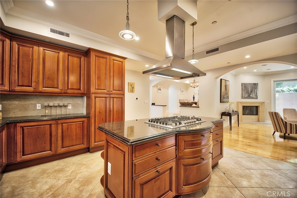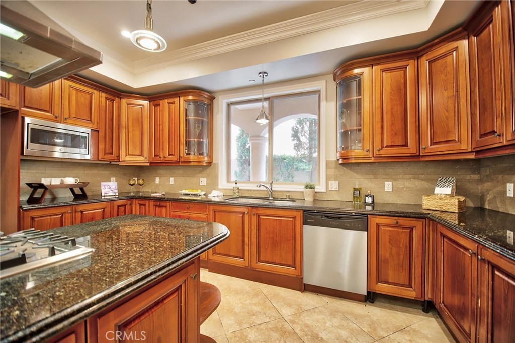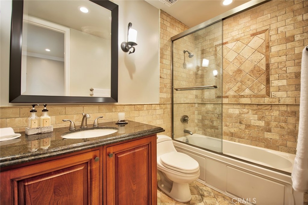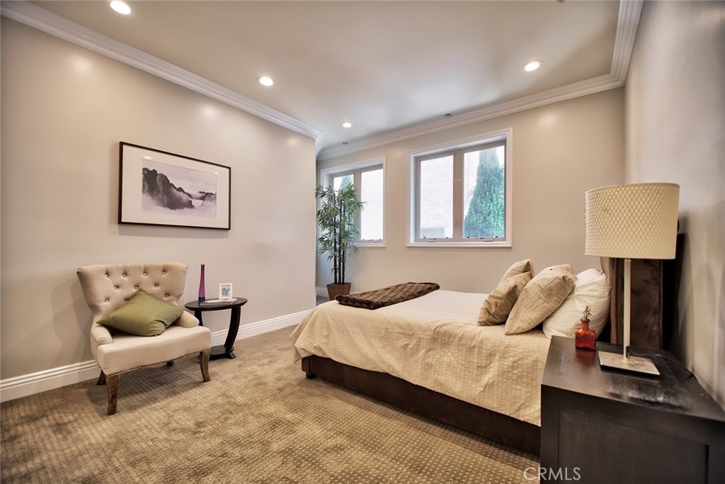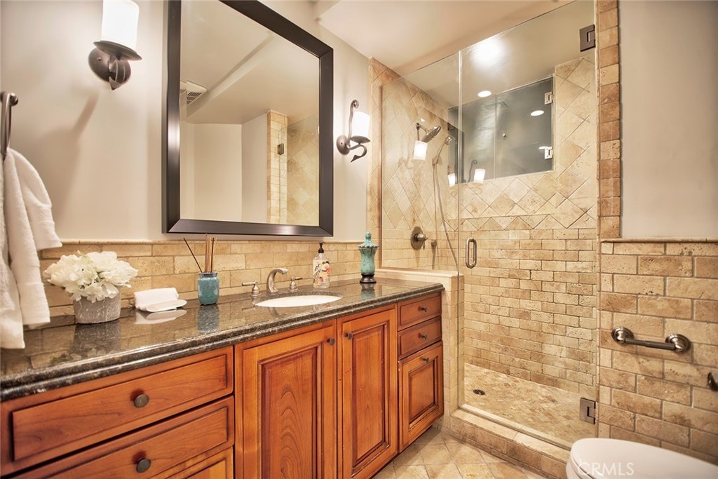 Gorgeous Mediterranean-style condo located in the Westwood/Century City area built in 2005 with no expense spared. Custom kitchen with island, ample cabinet space and granite counters. Vaulted ceilings, hardwood floors in the spacious living room, dining room and family room. Each bedroom has it's own attached bathroom and new quality carpet. Huge master suite with his and hers walk-in closets. Master bath with long dual vanity, shower and luxurious spa tub. Side patio that runs along the side of the unit and nice sized front patio as well surrounded by lush flowers and plants. 2 parking spaces in the secured parking area.