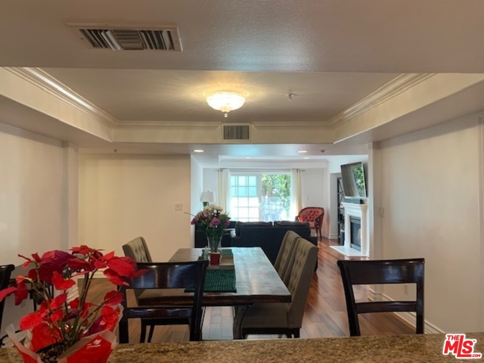 Set amongst beautiful palm trees is the much desired Century Fox Hills condominium community. This front facing 3+2.5 open concept unit offers the finest in finishes. Enjoy the light filled living/dining with beautiful crown moldings and fireplace opening to large chefs kitchen with custom cabinetry, granite counter tops and stainless appliances. All main rooms look to outdoor private patio surrounded by an umbrella of trees. Enjoy the oversized master suite with fireplace, walk in closet and spa like bath with large shower, dual sinks and soaking tub. There are two additional family bedrooms with beautiful hardwood floors throughout. Security system and earthquake insurance included in HOA. Walk to Century City Mall, gourmet market and numerous shops. Westwood Charter School.