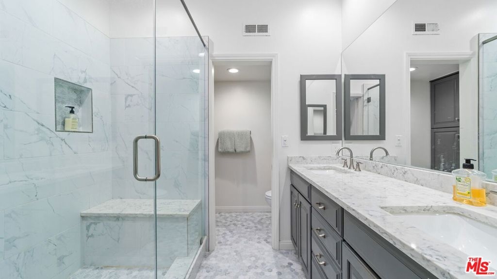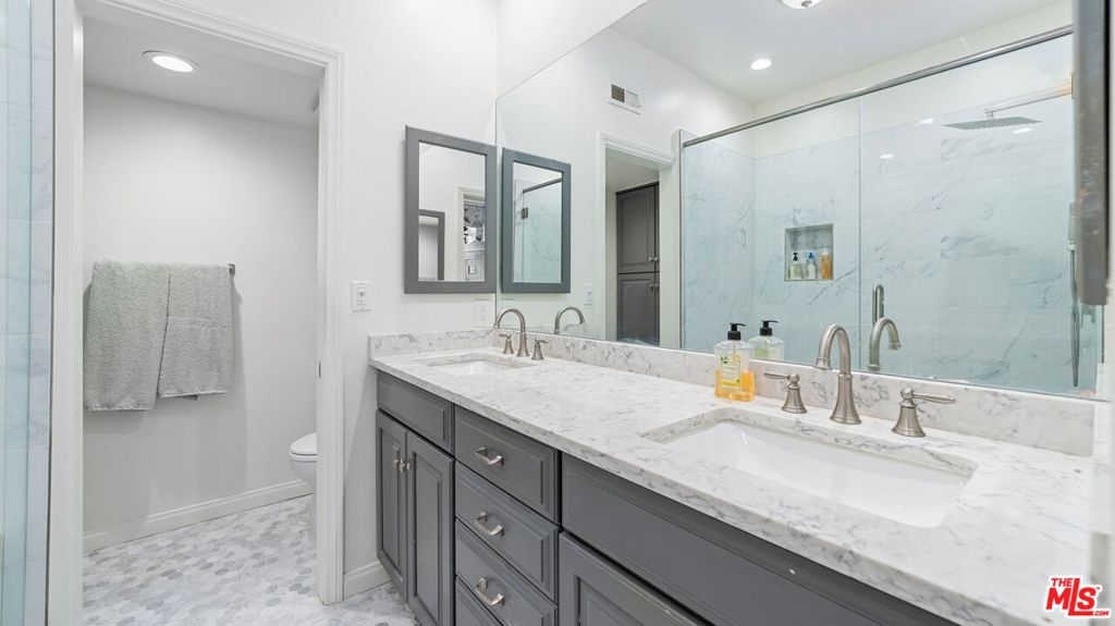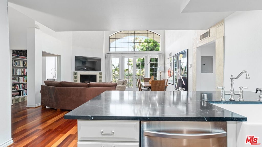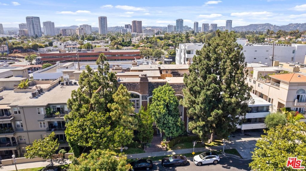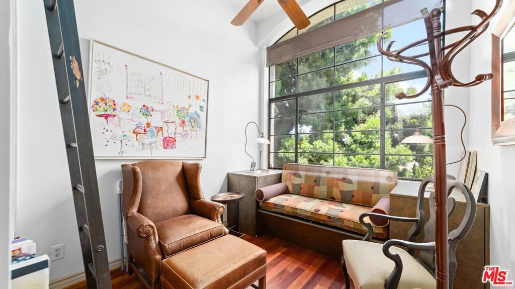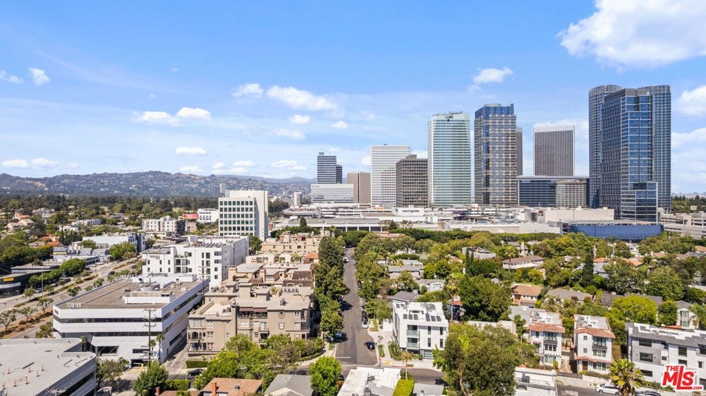 Phenomenal Century City Adjacent front-facing corner unit PENTHOUSE 2 bed/3 bath + Office + Loft/Guest Room in one of the most desired neighborhoods within a few blocks of Westfield Century City Mall. Designer finished and beautiful updates throughout. Open floor plan with double-story ceiling in living room with decorative fireplace and dining room, and beautiful large windows overlooking mature trees and greenery and french doors opening to spacious balcony. Newly remodeled open kitchen with contemporary finishes including Quartz countertops with breakfast bar, stainless steel appliances including 5 burner gas range/oven, newer cabinetry with pull-out drawers, glass-tiled backsplash and walk-in pantry. Office with wall of built-in bookshelves and large picture window overlooking greenery. 2 bedrooms including spacious primary suite with 2 windows, large custom-built walk-in closet and newly remodeled luxurious primary bathroom with dual basins, marble finishes throughout including glass-enclosed shower. 2nd bedroom with large closet and crown molding. Updated full bath in hallway with skylight. Additional loft space upstairs with built-ins and updated full bath, ideal for guest suite/family room. Additional features include hardwood flooring, newer central ac/heat, newer electrical, in-unit laundry area with storage, SIDE X SIDE parking with storage, extra large storage closet in unit, pets ok. Prime proximity to Century City, UCLA, Westwood Blvd. retail and restaurants. Westwood Charter School. Move-in ready!