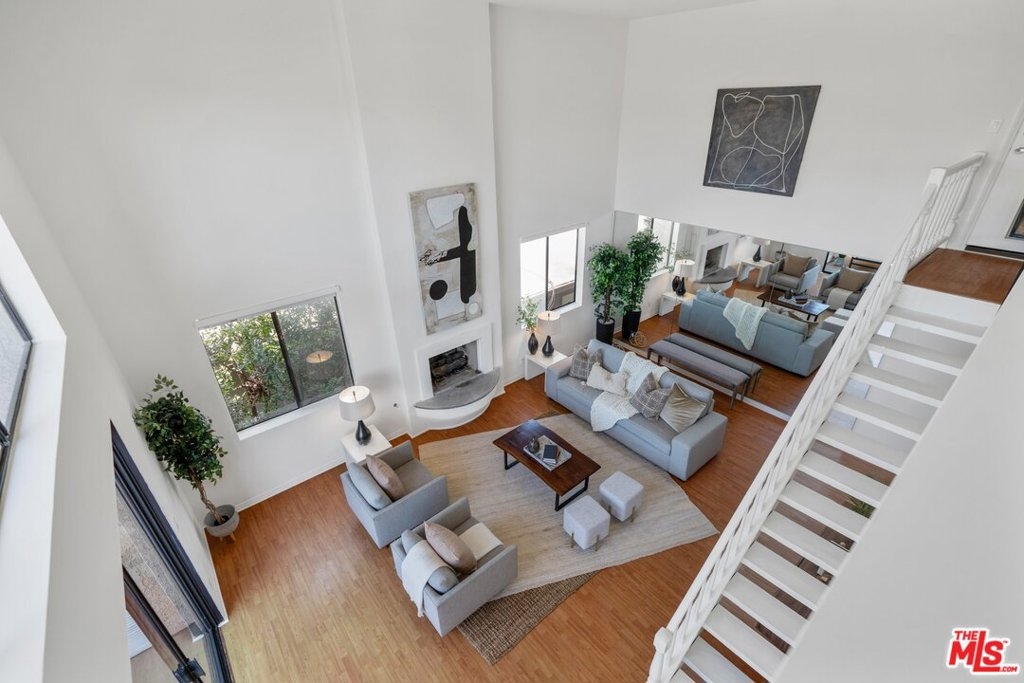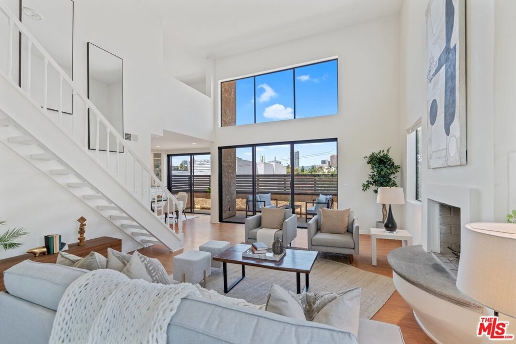 Top Floor Penthouse Unit located just 1 blocks from Century City Mall in single family neighborhood on tree-lined street! Two bedrooms + 2 baths on the main level, 3rd bedroom/Office option in loft area with sitting area and three-quarter bath upstairs adjacent to rooftop patio. Living room with vaulted ceilings, walls of glass, fireplace, and direct access to private patio with city views. Open kitchen with stainless steel counter/appliances and dining area with excellent built-ins and breakfast bar. Guest suite with recently updated bathroom with Carrera marble. Gracious primary bedroom with walk-in closet, double sinks and separate tub and shower set up. Additional Features included: Central Heat/Air, Side by Side laundry inside unit, two Secured/Gated parking spots (side by side). Small intimate building in prime location to access nearby shopping, theater, Equinox Gym Facility and Fine Dining with opportunities from Happy Hour to rooftop dining at Eataly. Amazing opportunity, show and sell!