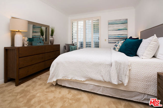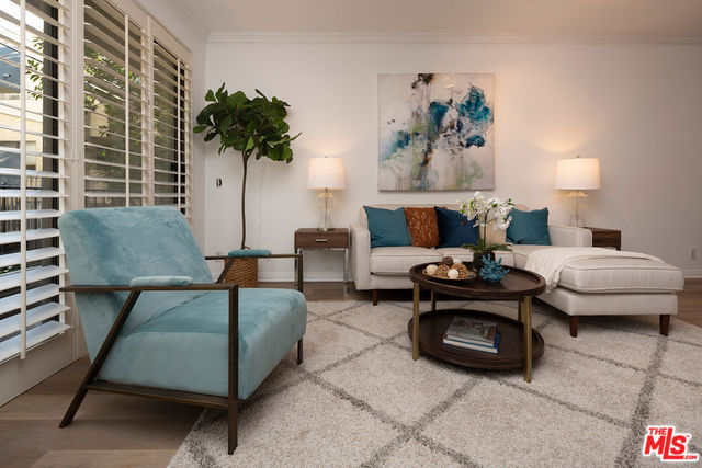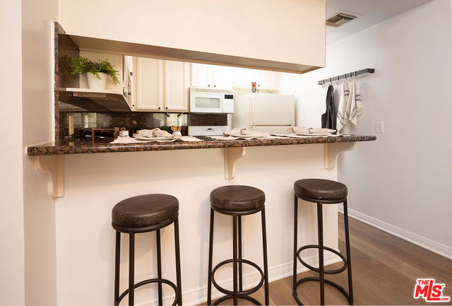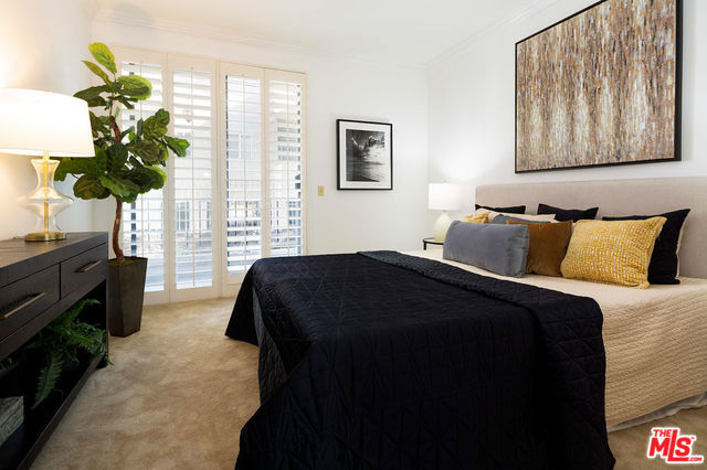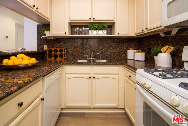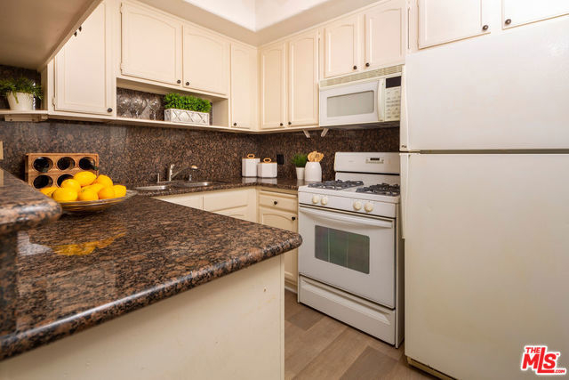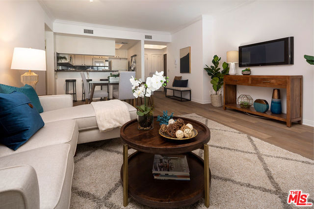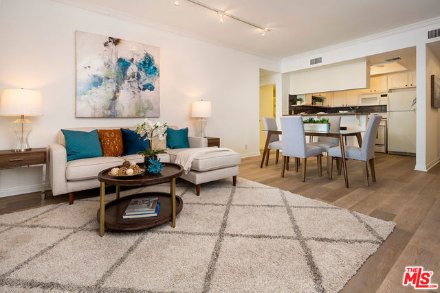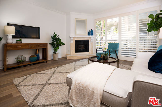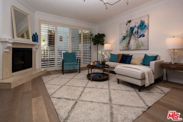 Remodeled, spacious 2 bedroom, 2 bath condo in prime Westwood location. Located above ground level, this gorgeous unit features new vinyl plank flooring in living areas, carpet in the bedrooms, and paint throughout. Large great room with cozy fireplace, crown moldings, plantation shutters and access to full unit length balcony opens to kitchen featuring granite countertops and breakfast bar. Two good-sized bedrooms, both with access to the balcony, the master featuring a walk-in closet and en-suite bathroom with shower, tub, and dual sinks. Second bathroom in hallway with shower serves bedroom #2 and guests. In-unit laundry completes this gem. Guest parking and great location in close proximity to shops and restaurants on Santa Monica and Westwood Blvds., UCLA, and Century City with a beautiful view of the iconic Westwood Mormon Temple from the front. A rare find for this price and location.