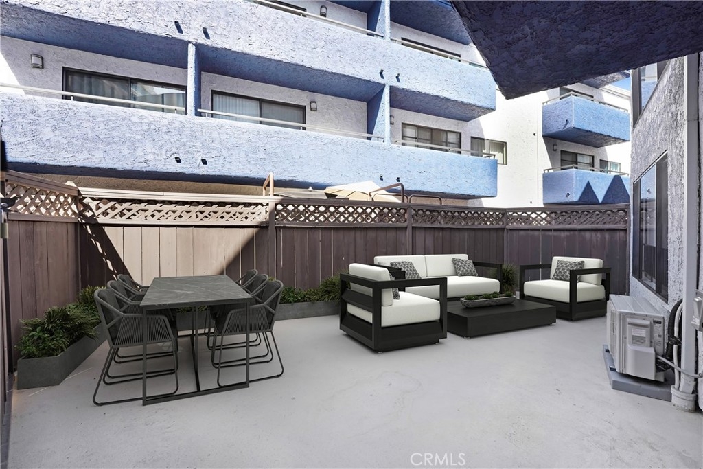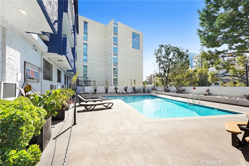 This stunning one-bedroom - end unit - offers an abundance of natural light, an open floor plan and includes a private patio – a rare and limited feature at this building. You can view the patio’s outdoor space from the living room, kitchen and dining area. The kitchen features stainless steel appliances and includes a refrigerator. The bedroom suite is spacious with a large walk-in closet and sliding doors out to the patio, also with patio views. The bathroom includes a tub/shower stall that is newly upgraded. There is a new HVAC split system with remote control convenience, wide-plank luxury vinyl floors and new window treatments throughout. This unit has one deeded parking space, Level-1/#28, conveniently located near the elevator for accessing this unit. Club California is a controlled access building and also it’s garage structure. The HOA offers a resort-like pool, two-level fitness center and a game room with pool tables and TVs. There is an on-site manager too. Saving the best for last is the LOCATION... Steps to Westwood Village, Ronald Reagan UCLA Medical Center and short walk to it’s Medical School and UCLA Campus. Westwood Village is known for it’s restaurants, shopping and entertainment. Also you will find supermarkets, a farmer’s market, public transit options and is rated 89/100 “Very Walkable” so most errands can be accomplished on foot. Don’t miss this opportunity to make this exceptional condo your home!