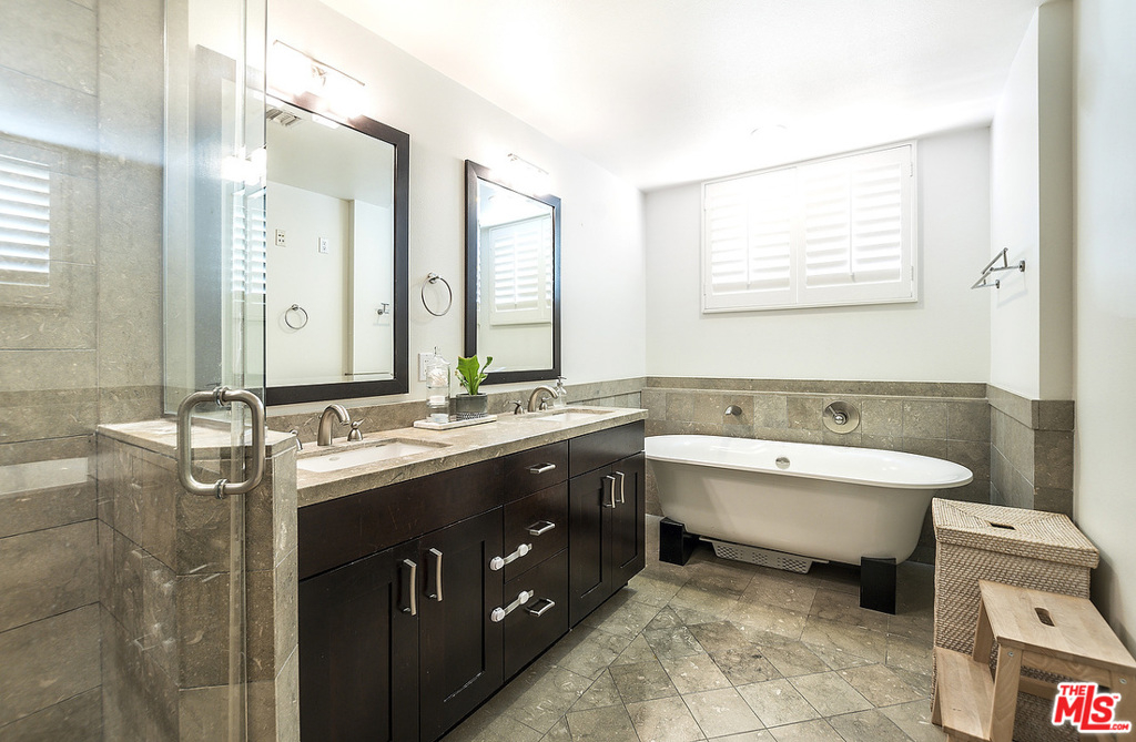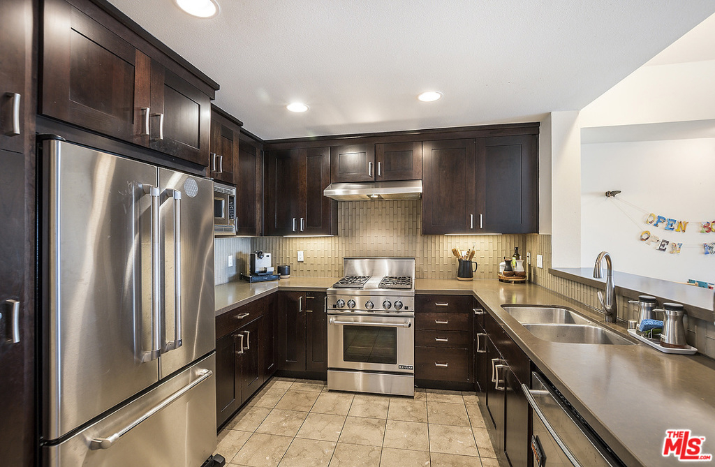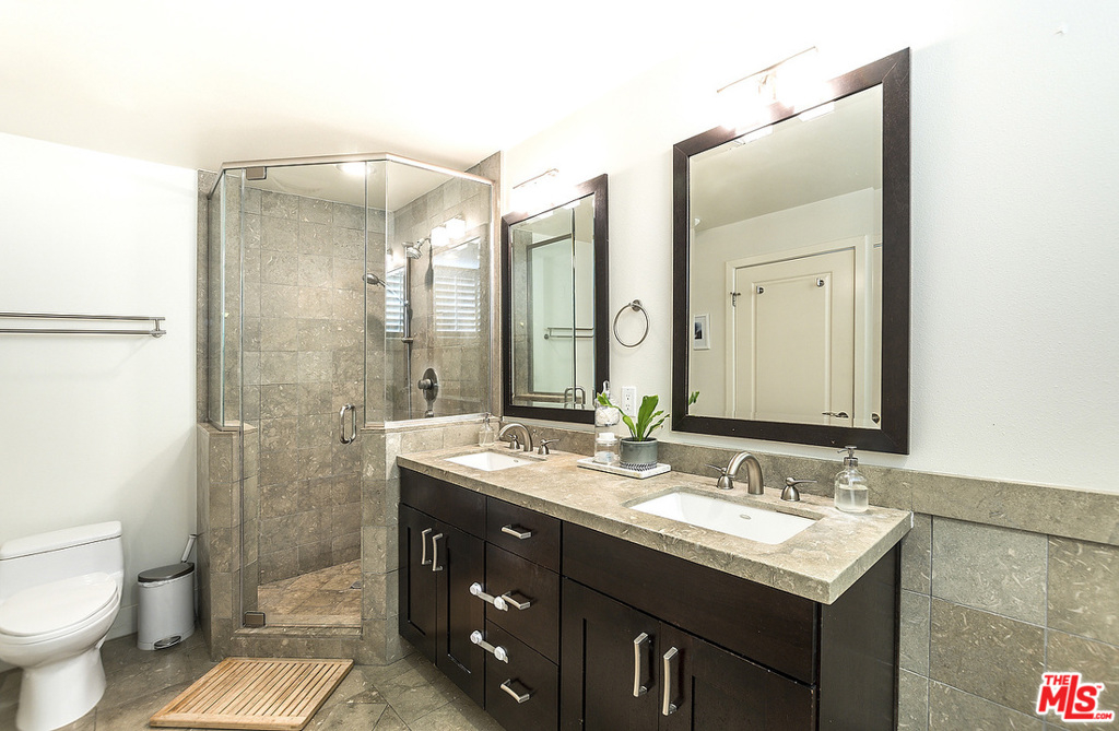 Bright front-facing 2-bedroom, 2.5 bathroom with double patios. This single story condo is in prime Westwood area. Boasting a gourmet European kitchen with stainless steel appliances, Caesarstone counters and a spacious open floor plan. Large living and dining areas open to a large private, sunny patio -- great for dining al fresco. High-end finishes consist of hardwood floors and stone tiling, dark cabinets, and custom wood built-ins in all closets. Master bedroom suite features a separate soaking tub and stone-tiled shower. Full size laundry in unit, secure gated parking and controlled access building equipped with video surveillance, two-car parking, guest parking, and additional storage in garage. This neighborhood is adjacent to Century City, Beverly Hills, Westwood Village/UCLA & Beautiful LA Beaches.