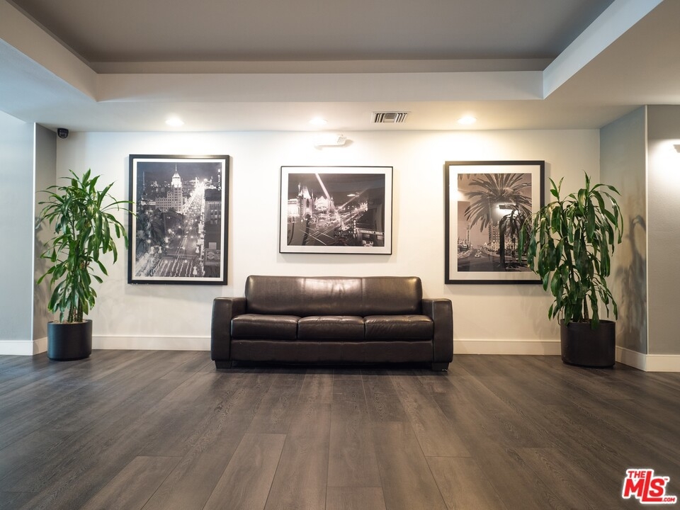 Serene 2 bed/2.5 bath single story condo in prime Westwood/Century City area, a ten minute walk to the Century City Mall. Rear facing corner unit w/only one common wall, this unit is bright and quiet surrounded by lush greenery and tree views. Spacious open floor plan w/high, nine feet ceilings is great for entertaining w/large living and dining areas. Luxurious finishes throughout including high-end engineered wood floors and wool carpets in bedrooms, Caesarstone countertops, soft-close custom cabinets, top of the line stainless steel appliances, custom blinds, built in speakers throughout, double-paned windows, keyless entry, Nest smart home system thermostat. Large master suite w/private juliet balcony, walk-in closet and separate shoe closet. Large second bedroom w/ attached full bath. Ample storage in unit w/linen and coat closets in hallway. Two parking spots in gated garage with guest parking and additional private storage unit. Video surveillance throughout the building.