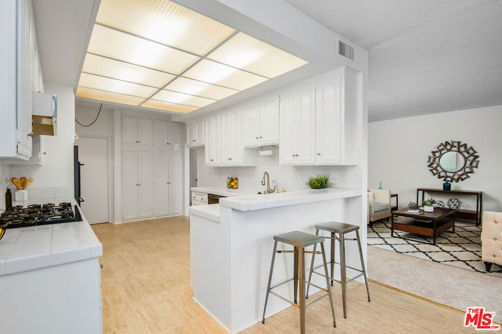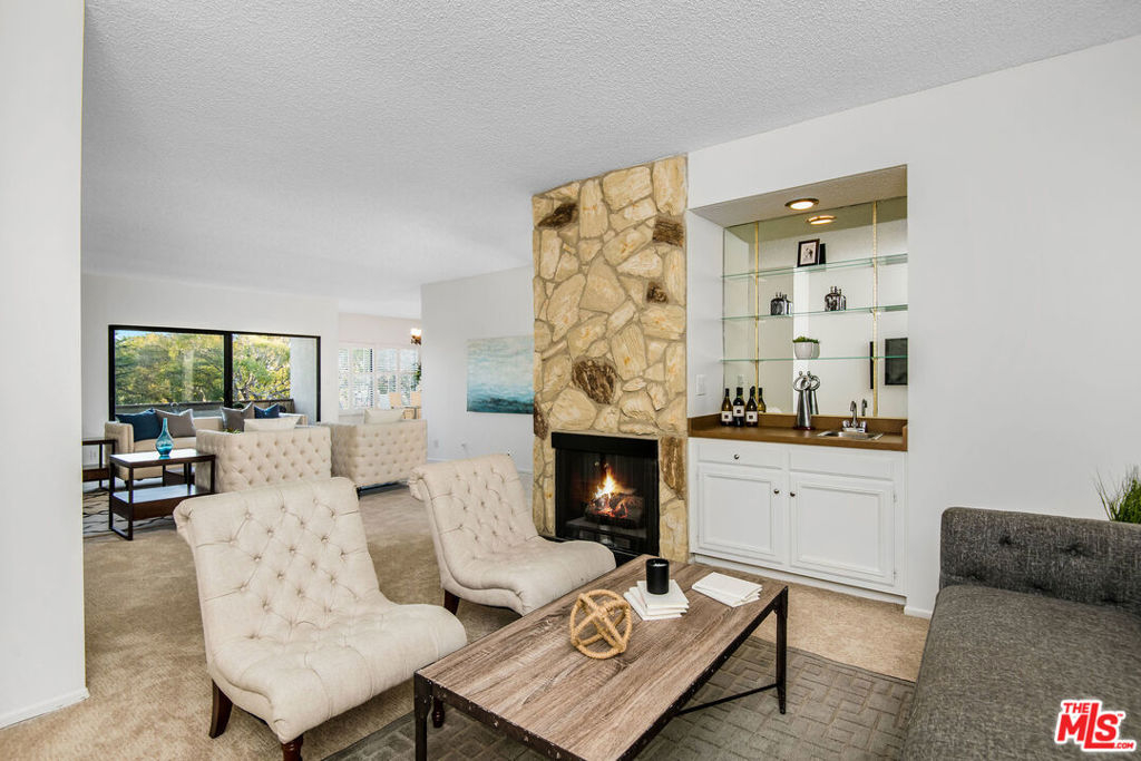 Fabulous owner/ end user opportunity in a prime Westwood location! Space and volume abound in this sprawling 1+DEN condo encompassing nearly 1400 sq ft of interior living space. Perfectly laid out for modern living, the adjoining den and living room spaces feature a fireplace, wet bar with built-ins, and sliding door access out to the balcony with bright southern exposure and treetop vistas. Immediately off the living room is the dining room, which opens into the spacious kitchen. Other features include a massive walk-in closet and traditional closet spaces, bona fide laundry room for side-by-side appliances, two parking spots, extra storage, and a great building that boasts pool/ spa, fitness room and low HOA dues. Choose your finishes and design aesthetic, and enjoy comfortable living close to all Westwood and Westside attractions and businesses!