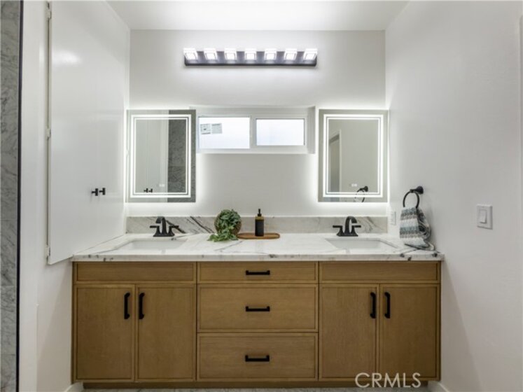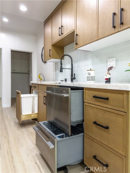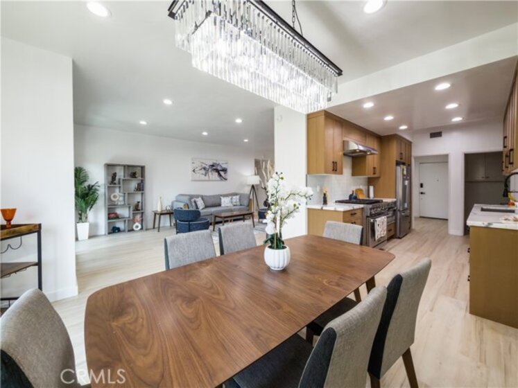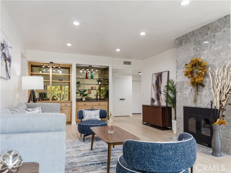 Beautifully remodeled 2-bedroom, 2.5-bath condo in prime Westwood location with all work completed under permits to ensure quality and compliance. Features include 8mm waterproof SPC vinyl flooring with 12mm underlayment, new double-pane windows and sliding door, recessed lighting with dimmers, and a marble-faced fireplace. The bathrooms showcase marble floors and backsplash, custom vanities with granite countertops, Kohler faucets, 12" rainfall showers, LED mirrors with defrost, and Kohler toilets. The modern kitchen boasts frameless cabinets, granite countertops, glass tile backsplash, and high-end appliances including a 36" American Range 6-burner (ARROB366-N), 42" ZLine range hood (619-42), GE Profile built-in microwave (PWB7030SLSS), Fisher & Paykel double-drawer dishwasher (DD24DDFTX7), Fisher & Paykel counter-depth French door refrigerator (RF170ADX4N), and Kohler faucet. Additional highlights include central air/heat, in-unit laundry room, balcony off the living room, optional no-stairs access from garage to the unit via elevator in the lobby, gated 2-spaces tandem parking, and community pool, spa, and clubhouse. Located in the desirable Westwood Charter school district, just minutes from UCLA, Century City, and Beverly Hills.