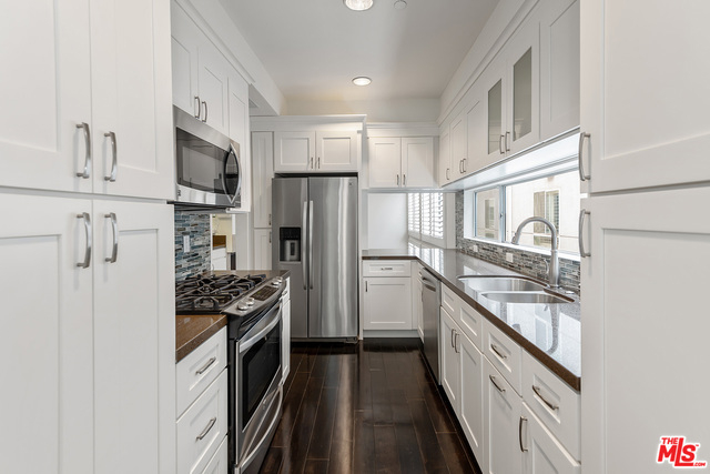 Don't miss this beautifully updated warm contemporary residence located in the heart of Westwood! Situated in a quiet boutique building with only two units per floor, this spacious unit is flooded with natural light through huge floor-to-ceiling windows complimented by rich, hardwood floors and planation shutters. The generous living area is completely surrounded by lush trees and greenery. Cook in a recently remodeled kitchen featuring stainless steel appliances, quartz counter tops and designer glass tile backsplash. Master suite features a spa-like bath and shower as well as a large walk-in closet. There is a flexible den area perfect as a formal dining room, office, or additional living space. Brand new side-by-side washer and dryer as well as two zones of central heat and air. Located in the coveted Westwood Charter school district and just a stone's throw from Westwood Blvd, Westwood Village, and Century City. A fantastic opportunity to own a sophisticated unit on the Westside.