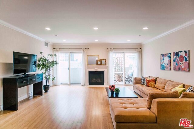 It's an easy move into this 3 Bedroom + 2.5 Bath, corner rear unit in a newer Mediterranean building near both Century City Shopping Center and UCLA. Spacious kitchen with Viking range and wide bar counter opening onto the dining/living area and balcony. Really lovely floorplan for entertaining. All the features of a 2005 construction - wood floors, fireplace and dual french doors off living room, secure building and prime location. Move right in!