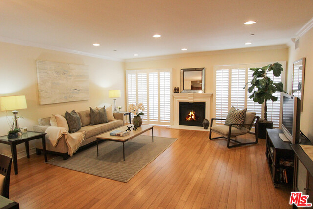 Stunning & spacious 3 bedroom, 2.5 bath upper level unit in highly desired Westwood location! Flooded with natural light throughout, this meticulously maintained unit showcases an expansive living room with wood shuttered windows, perfect placed balcony, warm fireplace and gleaming hardwood floors with an open flow to the dining area. An oversized gourmet cooks kitchen boasts state of the art Viking appliances, rich custom cabinetry and granite countertops with breakfast bar. Sumptuous master suite with sitting area, Juliette balcony and large built out walk-in closet. Luxurious en-suite travertine embellished bath with soaking tub and separate glass enclosed shower. Immaculate property located near shops and restaurants and within award winning Westwood Charter Elementary district!