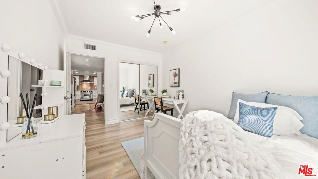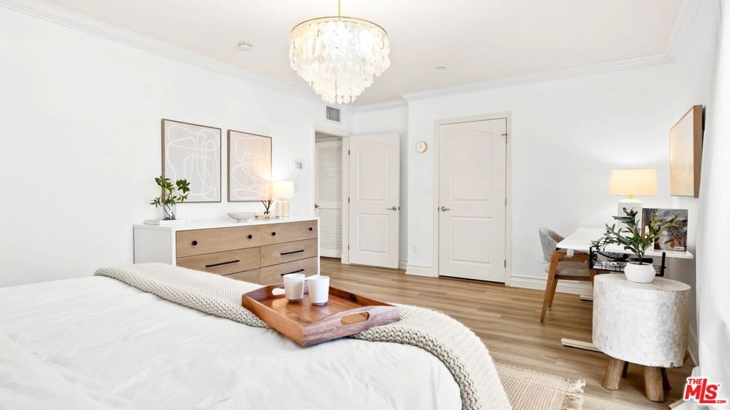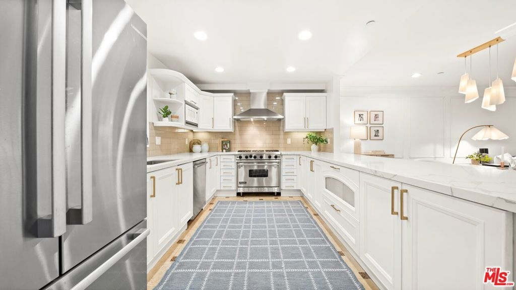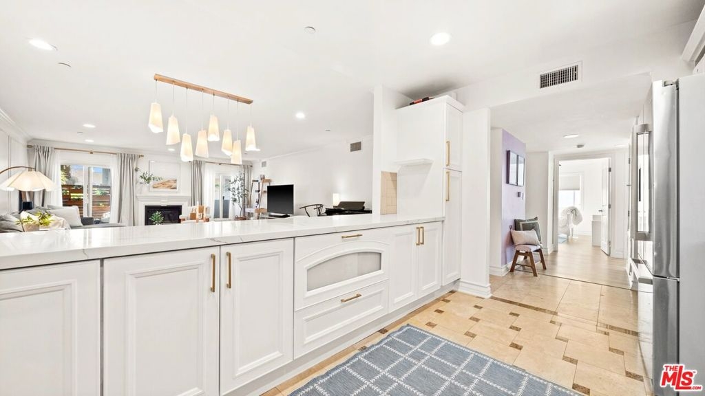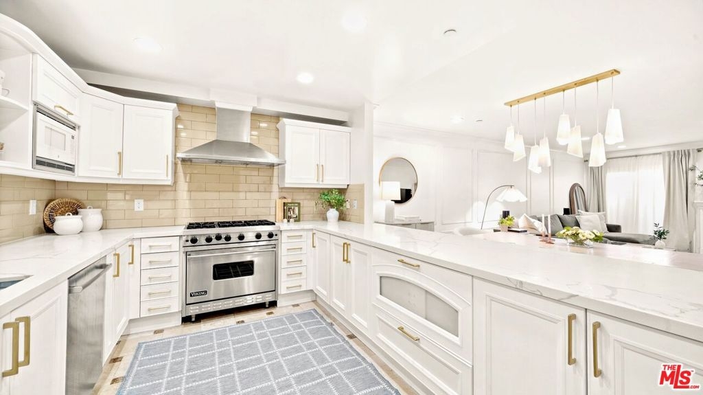 Discover the epitome of sophisticated living in the vibrant heart of Westwood! Boasting 3 generously sized bedrooms and 2.5 beautifully designed bathrooms, this home provides an idyllic retreat for those seeking comfort and style. This exquisite upper floor, single level condo stands out with its timelessness and functionality. The seamless design is highlighted by an open-concept kitchen with stunning quartz countertops, Viking stove, Bosch dishwasher, stainless steel appliances and designer finishes. Combined with a substantial dining area that includes a pass-through breakfast bar and a living area with two balconies and a cozy fireplace, a harmonious flow abounds that is perfect for both relaxation and entertaining. The living room has been elevated with wainscot wall paneling and sleek modern window treatments, creating a sophisticated ambiance. At the end of the day, escape into an elegant and expansive primary suite. With a spacious walk-in closet, a charming Juliet balcony and a primary bath adorned with designer finishes, dual sinks, and a separate tub and shower, this primary suite offers a spa-like experience reminiscent of a Mediterranean getaway. The additional bathrooms boast updated sinks and counters that add a fresh and modern touch. Also included are two generously sized bedrooms with sizable closets, a finished laundry closet, a deep linen closet, beautiful and durable travertine tile, central HVAC and Lutron lighting (pairs with Google and Alexa). Parking is a breeze with a secure and gated garage that includes assigned 2 car tandem parking spaces, complemented by additional guest parking. Nestled near UCLA and the world famous Westfield Century City Shopping Center, you can experience the best of West LA with top-tier restaurants and grocery stores moments away including Bristol Farms, 99 Ranch, and Sprouts. The highly coveted Westwood Charter Elementary School is only a few short blocks away. Don't miss your chance to own this superb unit in an exclusive building. Come take a look and experience unmatched luxury and convenience.
