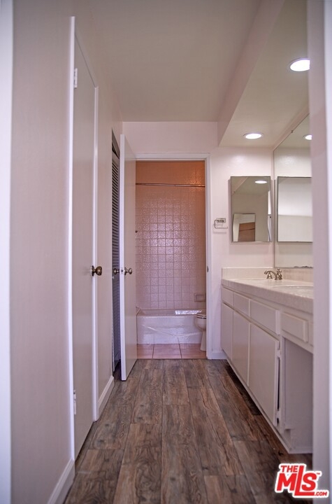 Welcome to this bright and spacious second floor 2 bed 2 bath in this highly sought after Westwood, Century City-adjacent location. Both bedrooms have laminate hardwood floors and generously sized walk-in closets. The master bedroom gets excellent light and enjoys a spacious bathroom with dual vanity and plenty of storage space. The complex has controlled entry, mail boxes in foyer and 2 tandem parking spots are included. This freshly painted unit with 1 common wall features floor to ceiling windows in the primary suite, sliding glass doors to East-facing balcony in living area, stacked W/D, central AC/Heat, gas FP with stone mantle and dining area wet bar. Glendon Villas HOA includes EQ insurance and central patio area with spa.