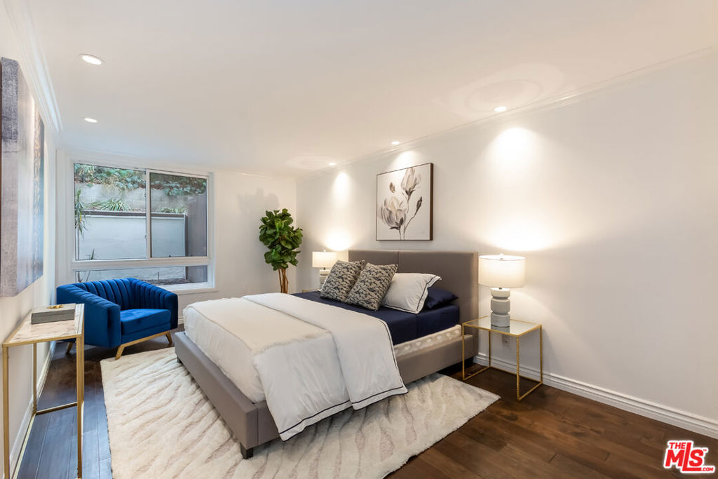 Offer Deadline is Wednesday Sept. 15 at 5:00pm. Great location! Convenient to Century City, UCLA, Beverly Hills and more. The building has just gone through an extensive renovation and modernization. This spacious 2 bedroom, 2 bath condo with wood flooring throughout has amazing patio space with room for a garden as well as outdoor seating and dining. Living room has a wet-bar, wood-burning fireplace and beautiful crown molding. Primary bedroom is en-suite with a large walk-in closet. Laundry inside the unit. Swimming pool and spa. 2-car parking and great storage. Incredible value in a prime location.