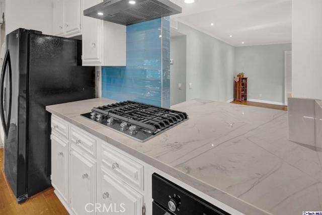 Beautiful views of single-family neighborhood's treetops to the south and mature trees adjacent to the unit from all windows. Ideal location for walking access to shops and restaurants as well as to the freeway and public transportation. Enclosed storage-space in secured underground parking garage. Two-bedroom, two-bath condo with updated kitchen countertops and backsplash, wood flooring, central heat and AC, recessed lighting and in-unit laundry. Balcony with more views of mature trees to the north and south. Transform the master with a huge walk-in closet and en suite bathroom. Pool, elevator, controlled access, jacuzzi... and coming soon gym/sauna. Let's go see it!