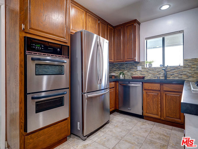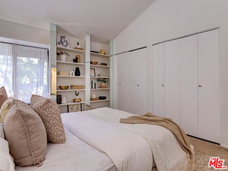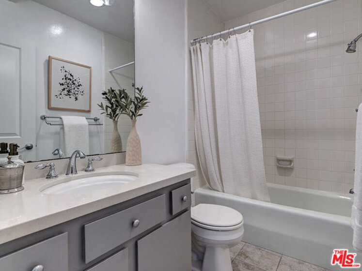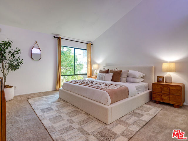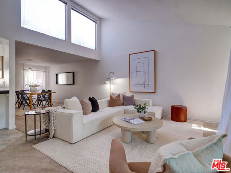 Welcome to sophisticated penthouse living in prime Westwood/Century City, where dramatic vaulted ceilings and expansive windows create a sun-drenched sanctuary with serene treetop views from your private balcony. This tastefully updated residence features a well-appointed kitchen with stainless steel appliances including rich oak cabinetry, sleek Caesarstone quartz countertops, and mosaic tile backsplash, plus a convenient laundry alcove with full-size front-loading washer and dryer. The open living and dining areas flow seamlessly around a cozy fireplace, perfect for both relaxed evenings and lively entertaining. The guest suite offers custom built-in shelving and large closets, with an adjacent updated bathroom featuring classic subway tile and modern fixtures. Your primary retreat boasts soaring ceilings, abundant natural light, an expansive walk-in closet, and a spa-like bathroom complete with dual-sink vanity, designer-tiled shower, and a separate soaking tub. Building amenities include a sparkling pool, spa, and top-floor sun deck. HOA dues include earthquake insurance, basic cable and broadband internet. Unit includes two tandem subterranean parking spaces and additional storage. With proximity to UCLA and Century City dining and shopping, easy freeway access, and zoning for highly-rated Westwood Charter Elementary, this turnkey home is the perfect blend of style, comfort, and luxury in one of LA's most desirable neighborhoods.