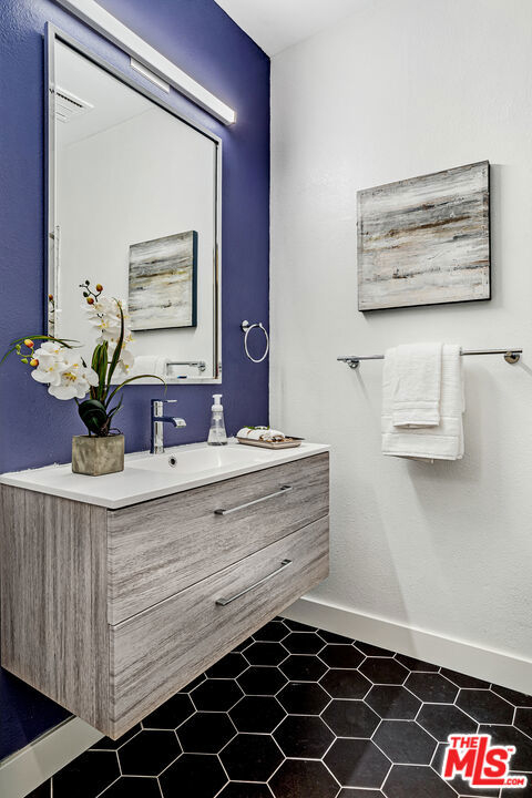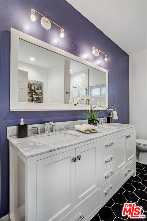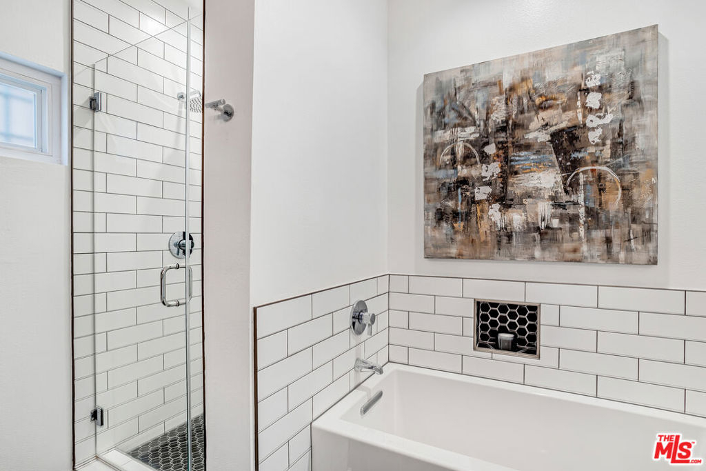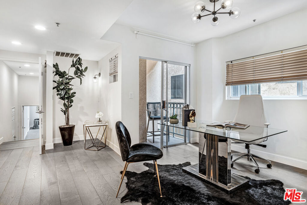 Sleek, remodeled two bedroom, two bath plus office residence in the heart of Westwood. This spacious home is highlighted by an open floor plan, wide plank grey oak floors, three separate patios, and vaulted ceilings in both bedrooms. The open concept living and dining rooms flow into the gorgeous chef's kitchen which features stainless steel appliances, new cabinetry and countertops, and an extra wide sink. As you head towards the bedrooms, there is a flexible bonus space that is currently being used as an office, along with an in-closet washer and dryer. Down a short flight of stairs you reach both bedrooms, and at the end of the hall is the enormous primary suite. It includes a classically designed ensuite bathroom with separate tub and shower, two walk-in closets, and it's own patio. Located just a block from all that Santa Monica Blvd has to offer, yet set on a quiet street, this is a special home that is not to be missed!
