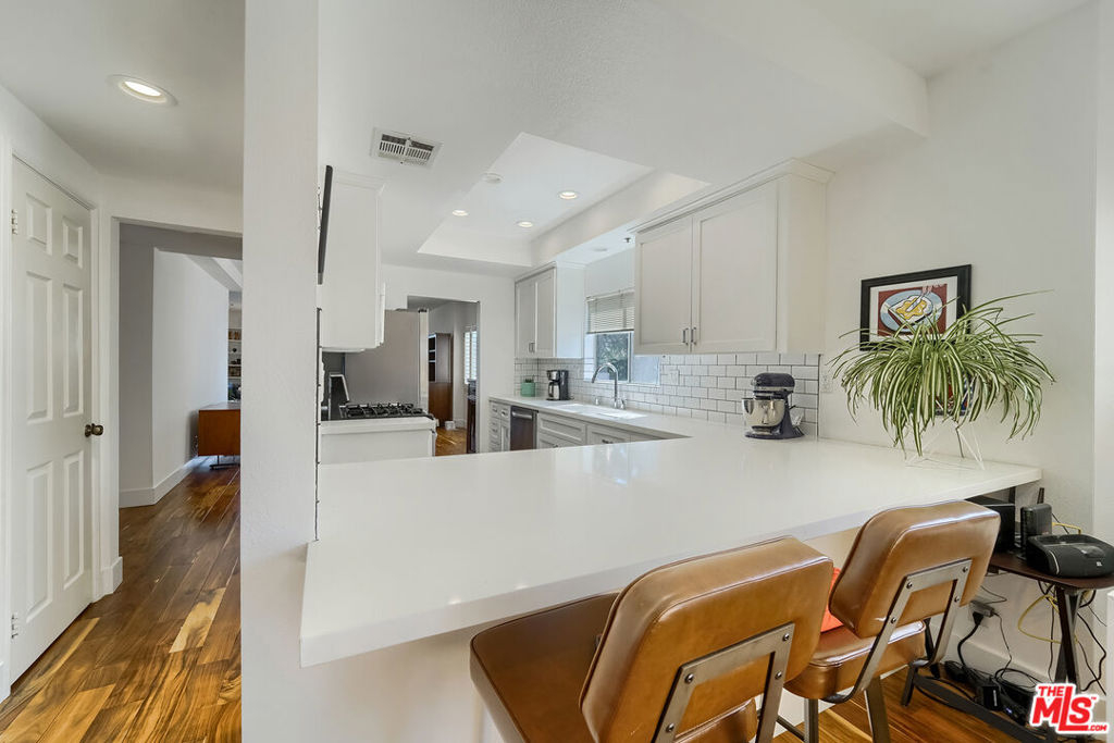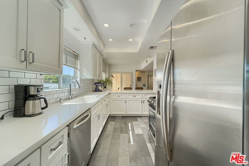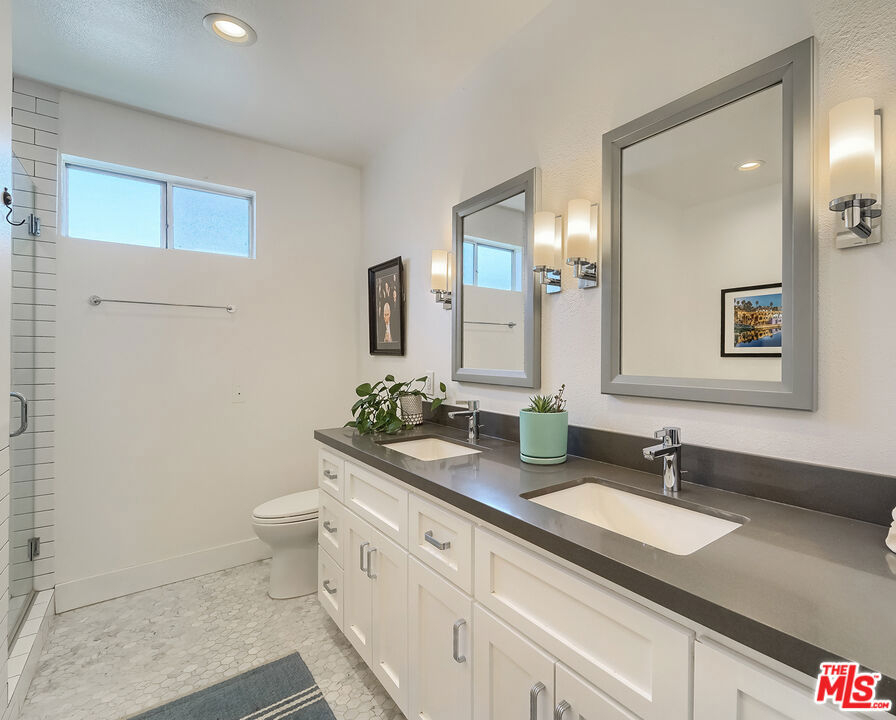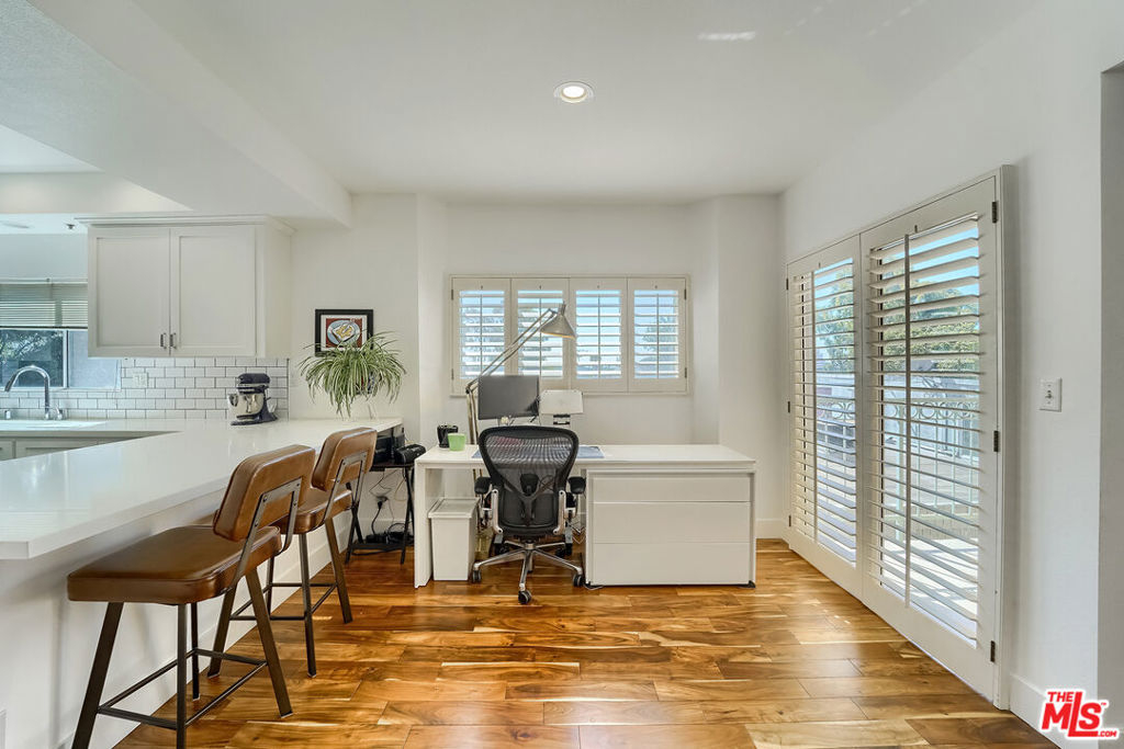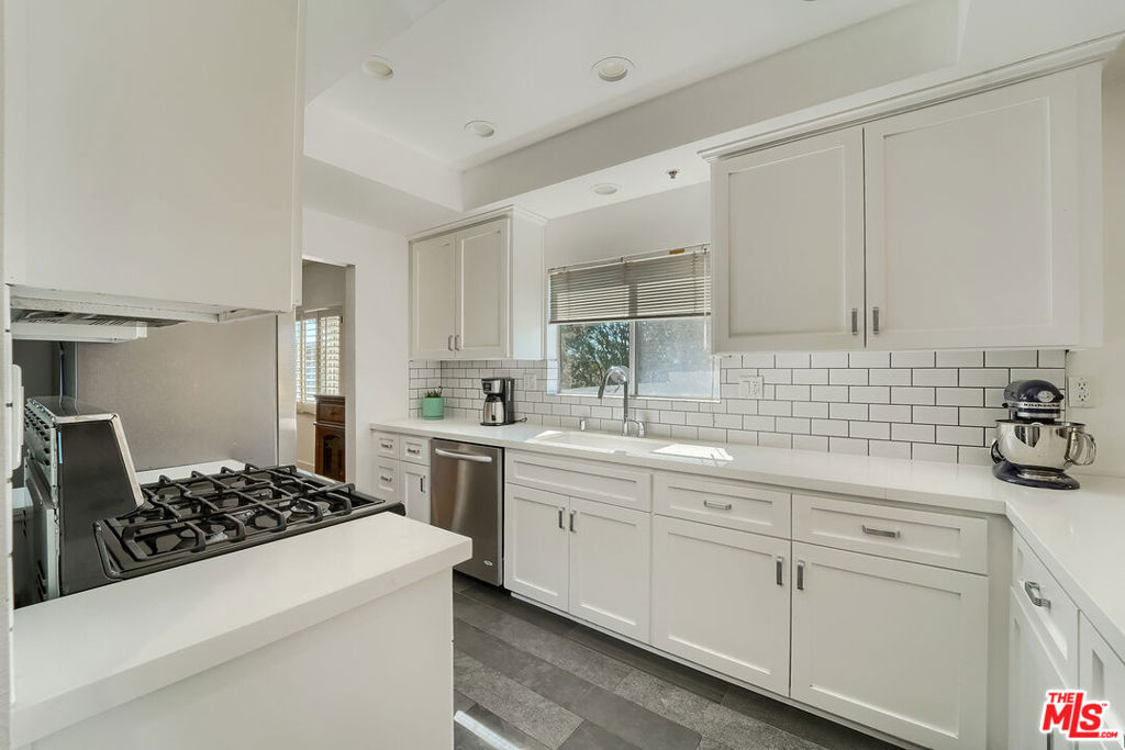 3D tour: https://my.matterport.com/show/?m=dc77kquVeD3. Top floor, sun filled and open city views from every room in prime Westwood! Privacy and space abound in this intimate 8 unit building with only two units per floor with no shared walls. Large living room with fireplace and balcony flows seamlessly to the dining area and kitchen and is open to a large den with another balcony for gracious entertaining. Generously proportioned single level condo is intelligently designed in sync with contemporary lifestyles. Renovated kitchen boasts new counters, stainless appliances, ample work space and large pantry. Large master bedroom features dual walk-in closets and a west facing balcony with wondrous sunsets. Renovated master bath with dual sinks, new tub, separate shower. Second bedroom, second renovated full bath complete this spacious gem. Elegant mix of newly installed engineered wood and tile throughout. High ceilings, plantation shutters, smooth ceilings, recessed lighting, ample closets, laundry closet with full sized washer/dryer and additional storage. All in Westwood Charter per LAUSD. Tandem parking for 2 in gated and secure subterranean garage, guest parking. Conveniently located, just minutes to Westwood Village, UCLA, the new Google campus, Century City Westfield Mall, Beverly Hills, Sawtelle, and Brentwood . Easy access to the 405 and 10 freeways and area beaches. HOA dues include EQ insurance.