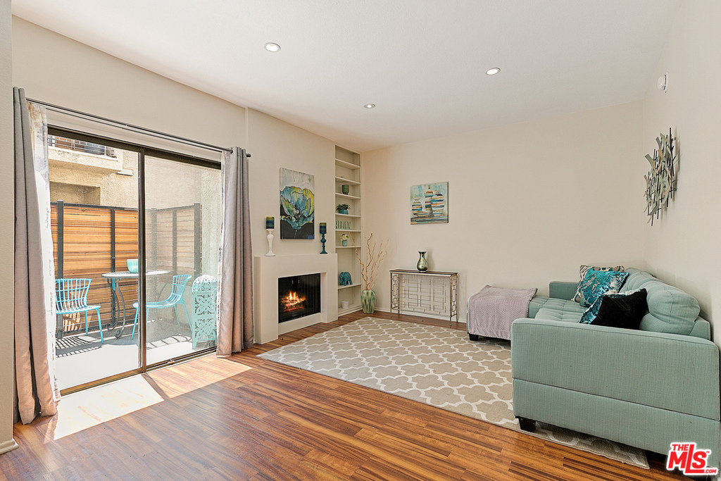 Welcome to Greenfield - a charming and quiet Townhouse located on a beautiful tree-lined street in Westwood. Walk into an open concept with a great indoor / outdoor flow, light filled living room and dining room area, equipped with a fireplace and built ins. Downstairs we have a spacious powder room, updated kitchen with stainless steel appliances, and sliding glass door leading to deep patio, enclosed for privacy. Upstairs features a primary suite with a large walk-in closet, vaulted ceilings, skylight and balcony. Second bedroom suite features a floor-to-ceiling window and private bathroom. This home is upgraded to include recessed lighting, hardwood floors, in-unit washer/dryer, 2 parking spaces (tandem) and extra storage.