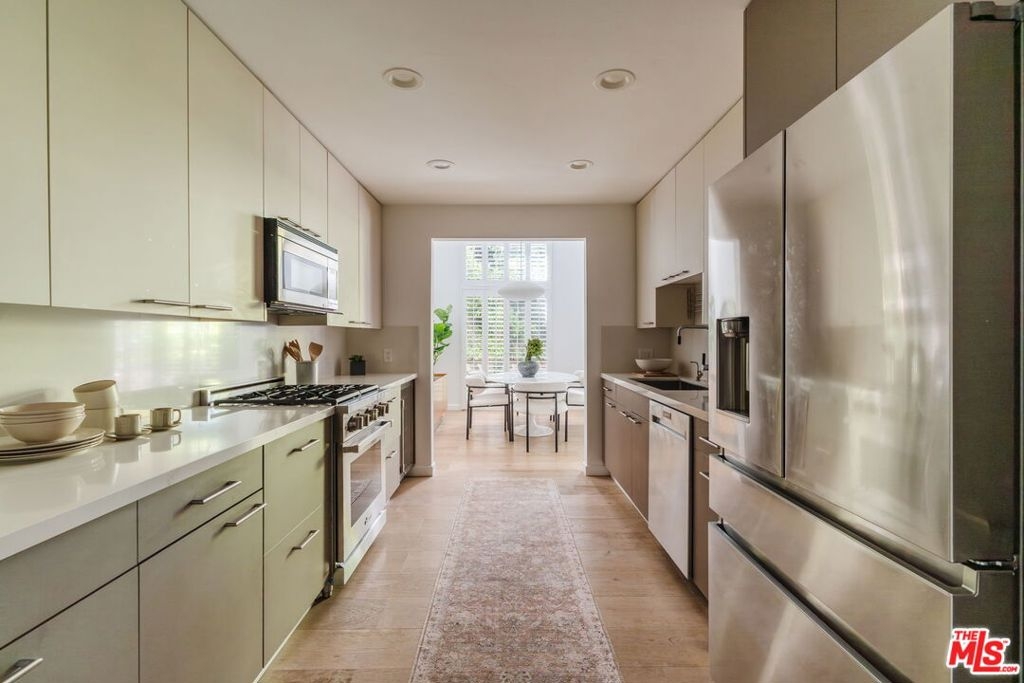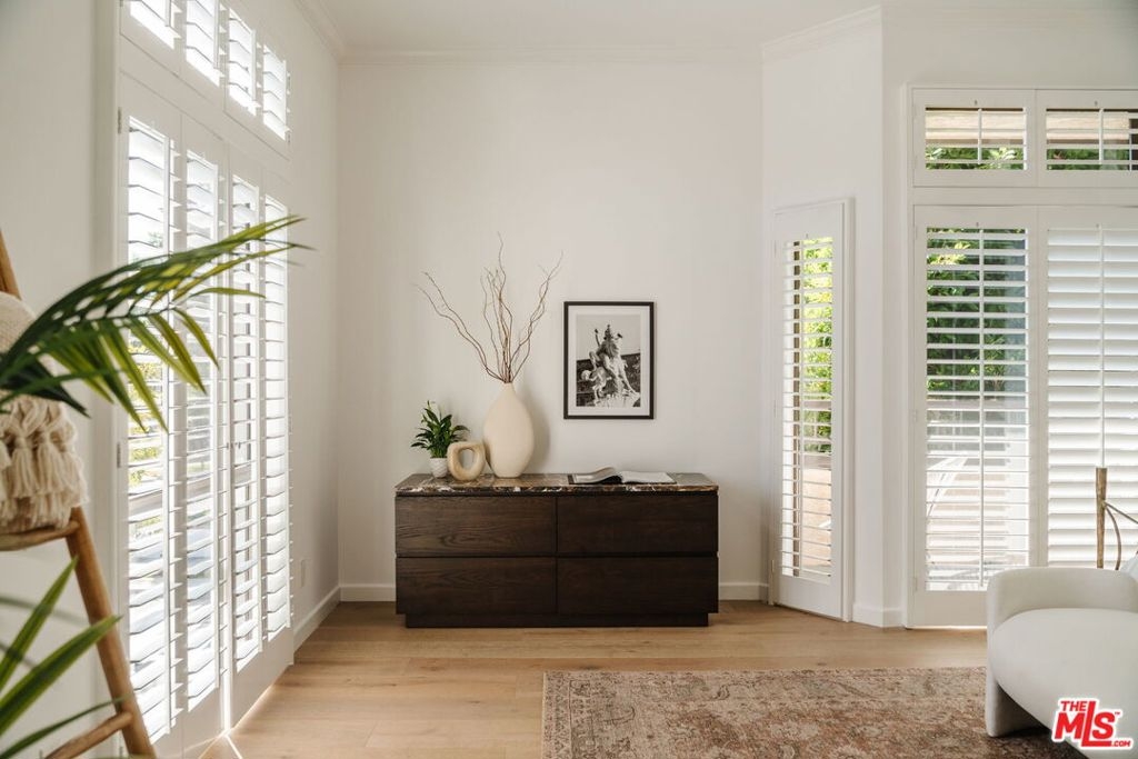 Welcome home to this beautifully updated 2-bedroom, 2-bathroom turn-key residence in a quaint, boutique building of just 15 units. Ideally located in the heart of Westwood, moments from UCLA, Westwood Village, and the best shopping, dining, and amenities on the Westside. Bathed in organic natural light, this home features soaring ceilings, wide plank oak hardwood floors, and elegant wood shutters throughout. The open-concept living and dining areas are anchored by a cozy fireplace and enhanced with recessed lighting, while sliding glass doors open to a terrace. The recently remodeled kitchen is designed for both style and function, boasting sleek cabinetry, stainless steel appliances, a built-in wine fridge, and a water filtration system. The oversized primary suite offers a tranquil retreat with its own terrace, generous closet space, and large bathroom with a soaking tub and separate glass enclosed shower. A spacious secondary bedroom and full bath provide comfort and flexibility for guests. Additional highlights include custom built-ins, in-unit laundry room, side-by-side parking, extra storage, and on-site guest parking. The HOA is professionally managed and very well run, ensuring a secure and well-maintained environment. This immaculate condo combines elegant sophistication with the intimacy of boutique living; an ideal opportunity to experience the best of Westside life. Lender-approved building, eligible for most financing.