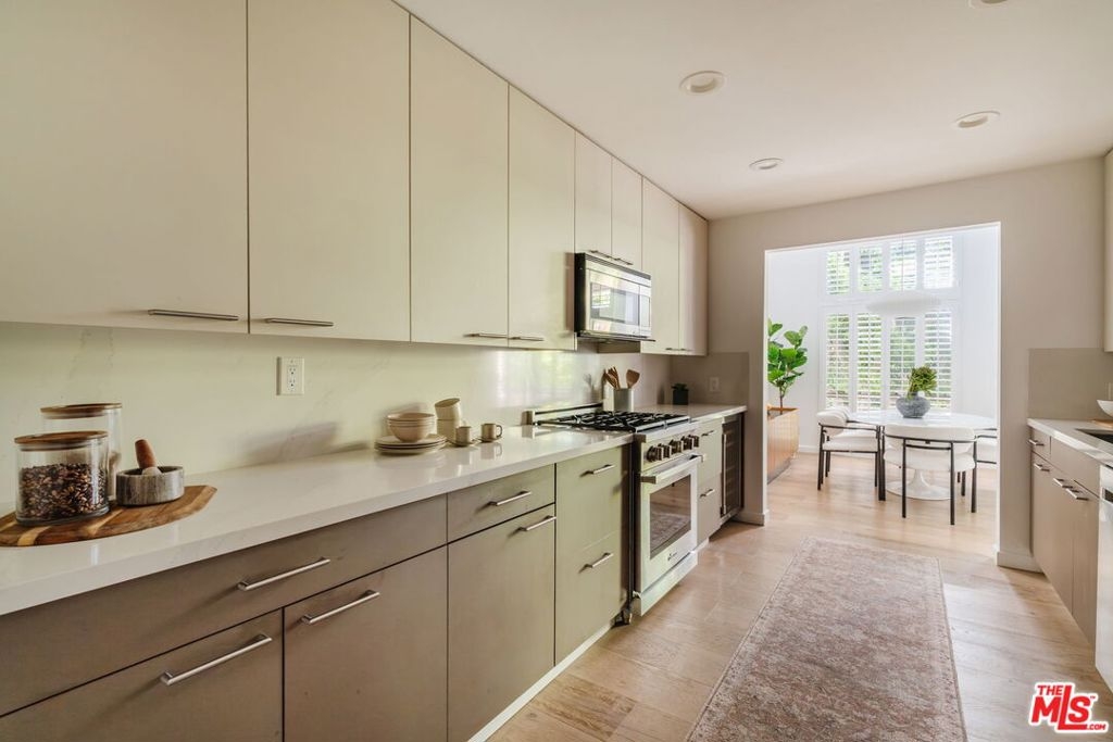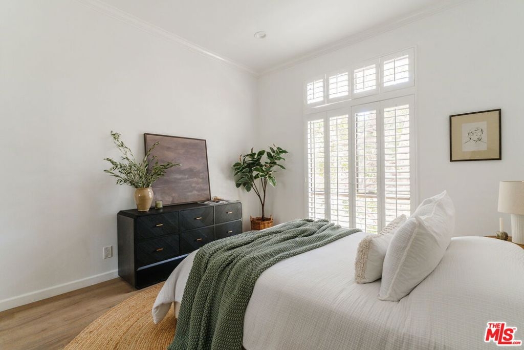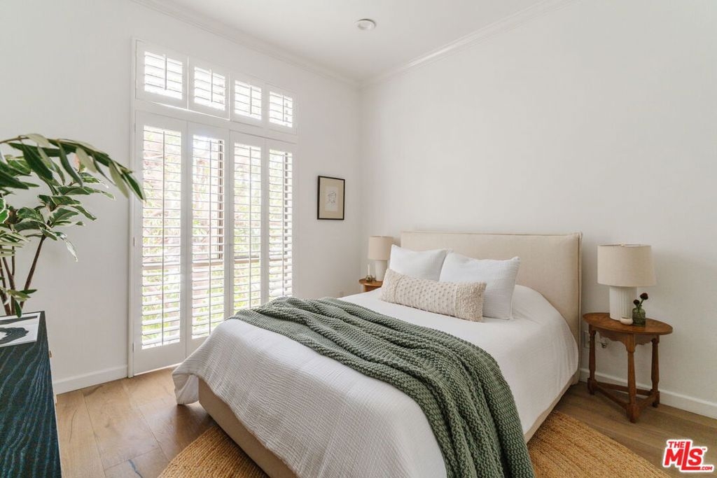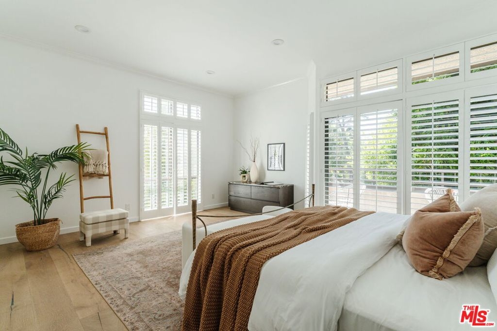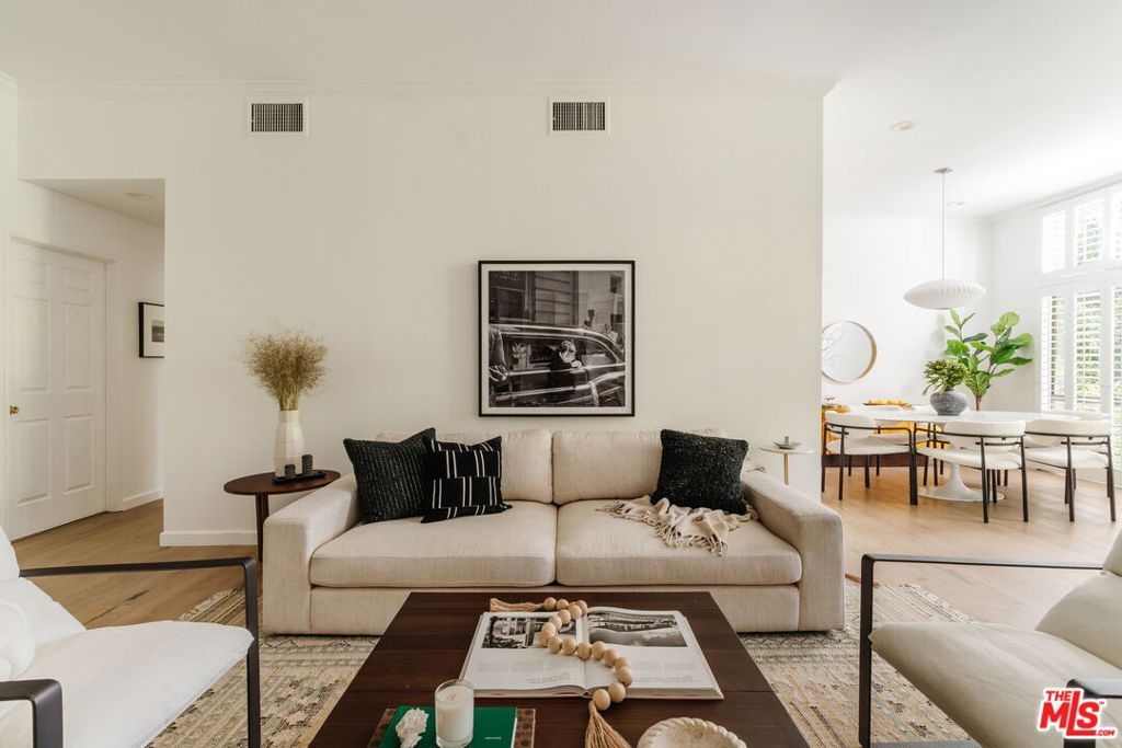 Welcome home to this beautifully updated 2-bedroom, 2-bathroom turn-key residence in a quaint, boutique building of just 15 units. Ideally located in the heart of Westwood, moments from UCLA, Westwood Village, and the best shopping, dining, and amenities on the Westside. Bathed in organic natural light, this home features soaring ceilings, wide plank oak hardwood floors, and elegant wood shutters throughout. The open-concept living and dining areas are anchored by a cozy fireplace and enhanced with recessed lighting, while sliding glass doors open to a terrace. The recently remodeled kitchen is designed for both style and function, boasting sleek cabinetry, stainless steel appliances, a built-in wine fridge, and a water filtration system. The oversized primary suite offers a tranquil retreat with its own terrace, generous closet space, and large bathroom with a soaking tub and separate glass enclosed shower. A spacious secondary bedroom and full bath provide comfort and flexibility for guests. Additional highlights include custom built-ins, in-unit laundry room, side-by-side parking, extra storage, and on-site guest parking. The HOA is professionally managed and very well run, ensuring a secure and well-maintained environment. This immaculate condo combines elegant sophistication with the intimacy of boutique living; an ideal opportunity to experience the best of Westside life. Lender-approved building, eligible for most financing.