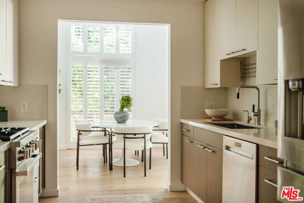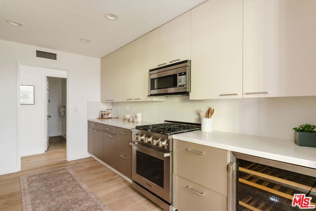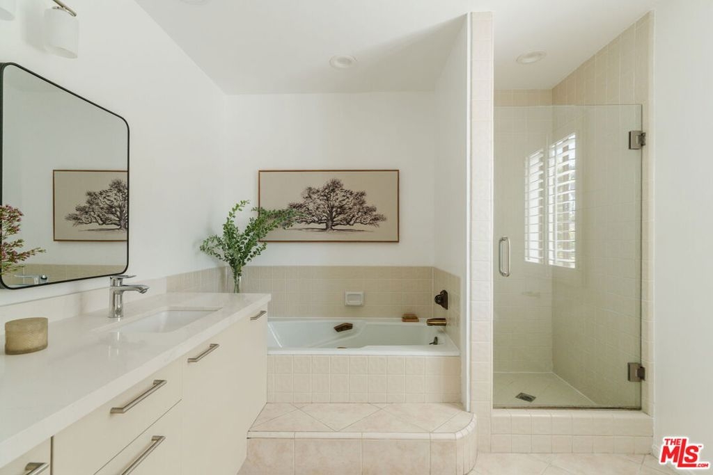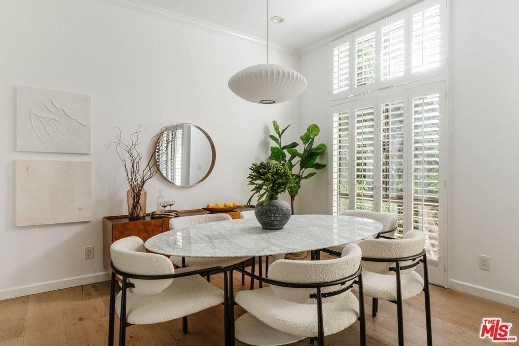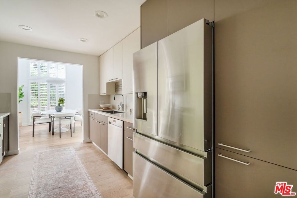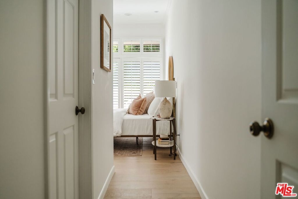 Welcome home to this beautifully updated 2-bedroom, 2-bathroom turn-key residence in a quaint, boutique building of just 15 units. Ideally located in the heart of Westwood, moments from UCLA, Westwood Village, and the best shopping, dining, and amenities on the Westside. Bathed in organic natural light, this home features soaring ceilings, wide plank oak hardwood floors, and elegant wood shutters throughout. The open-concept living and dining areas are anchored by a cozy fireplace and enhanced with recessed lighting, while sliding glass doors open to a terrace. The recently remodeled kitchen is designed for both style and function, boasting sleek cabinetry, stainless steel appliances, a built-in wine fridge, and a water filtration system. The oversized primary suite offers a tranquil retreat with its own terrace, generous closet space, and large bathroom with a soaking tub and separate glass enclosed shower. A spacious secondary bedroom and full bath provide comfort and flexibility for guests. Additional highlights include custom built-ins, in-unit laundry room, side-by-side parking, extra storage, and on-site guest parking. The HOA is professionally managed and very well run, ensuring a secure and well-maintained environment. This immaculate condo combines elegant sophistication with the intimacy of boutique living; an ideal opportunity to experience the best of Westside life. Lender-approved building, eligible for most financing.