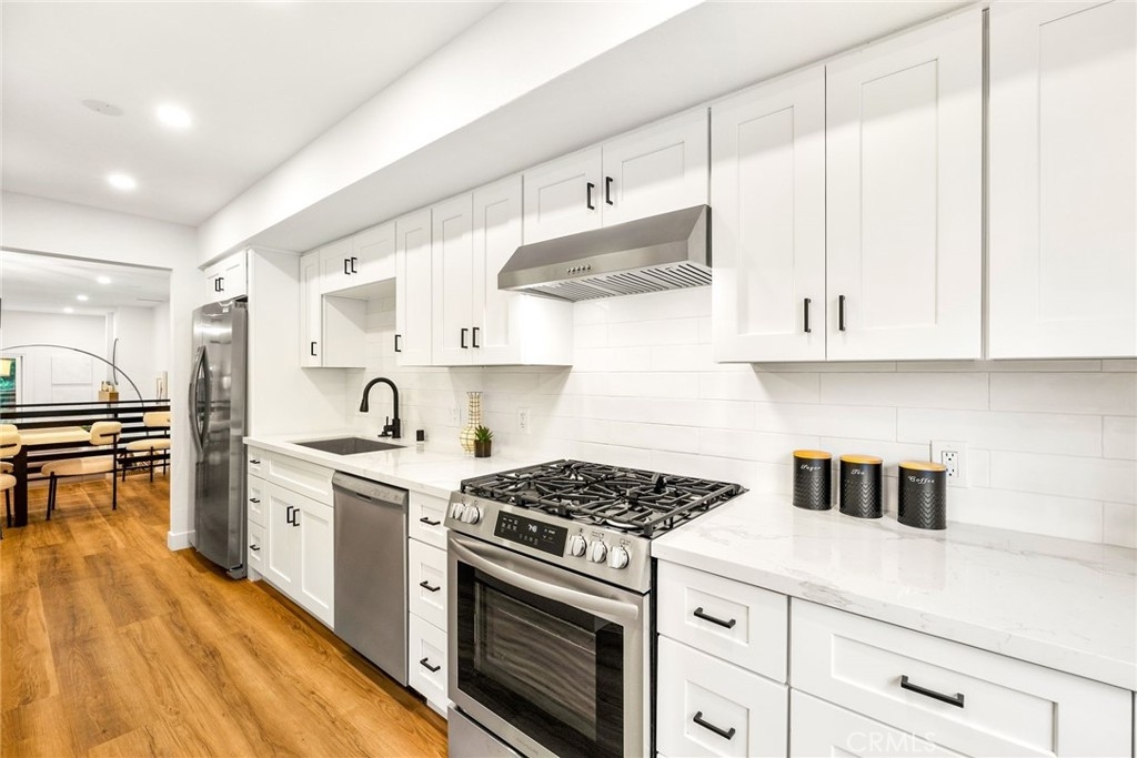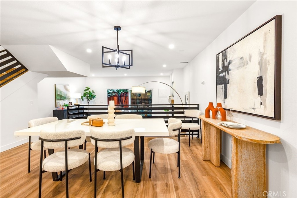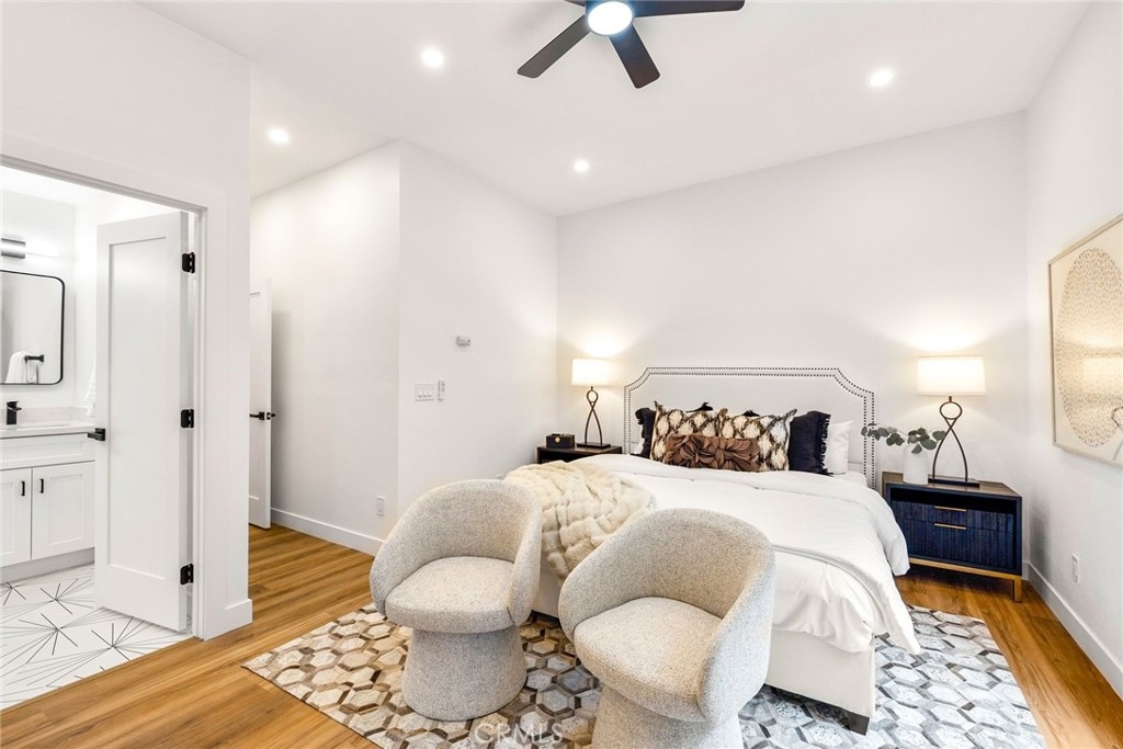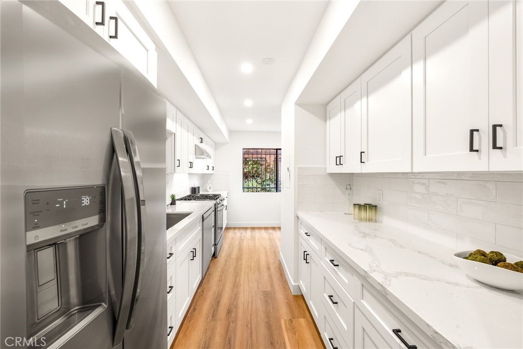 Welcome to 10600 Holman Ave #9, a beautifully fully remodeled 3-bedroom, 3-bathroom condo in the heart of Los Angeles. With 1,615 sqft of living space, this modern unit features sleek LVP flooring, new shaker cabinetry, and stylish quartz countertops throughout. Enjoy brand-new stainless steel appliances, sinks, faucets, and garbage disposal in the kitchen. Additional highlights include remote-controlled ceiling fans, new bypass sliding closet doors, and elegant shaker interior doors with upgraded hardware. The main living area includes a separate dining space, a wet bar, and a private enclosed patio – an ideal setting for entertaining guests or relishing quiet moments at home. Once upstairs, you'll find three bedrooms: two perfectly suited for guests or office space, while the spacious primary bedroom showcases an ensuite bath and closet. Each bathroom is adorned with custom tile-work and designer finishes. Secure entry building, two assigned parking spots, and dedicated storage space. Situated on a tree-lined street with effortless access to all that Century City has to offer, this home epitomizes the very essence of refined urban living!