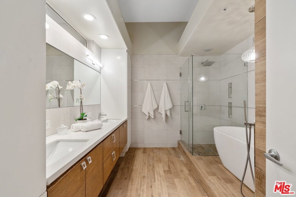 Here your opportunity to own this fabulous front-facing unit, in the best location. Walking distance to Century City Mall & lifestyle shops, and just couple of minutes drive to Beverly Hills. Spread over 1,729 square-feet of living space, 2 bedrooms 2.5 baths PLUS a Den. Beautifully remodeled and cared for. Spacious and bright Living room with a fireplace, and a front balcony. Lovely Dining with large glass window looking out to courtyard area. Brand new plush-berber carpeting in the bedrooms and the hallway to the bedrooms. Master-suite has a romantic fireplace, large dual walk-in closets & a balcony. Stunning master bath has dual sinks, separate glass shower, and more importantly, a relaxing tub to soak-in after a long day. Second bedroom suite also has large walk-in closet, and gorgeous bathroom, and a window with courtyard view. Chef's kitchen with granite countertops, stainless appliances, and cabinetry with ample storage. It also has a breakfast nook. In addition there is a den with built-in bookshelves, or you can call it your office, or a gym. Side by side washer and dryer in the laundry closet with storage cabinet. The building has a secure/ controlled entrance. Gated garage, with 2 reserved parking spaces for this unit. Freshly painted and just READY to move in. This building rarely has a unit for sale, so don't miss your opportunity !