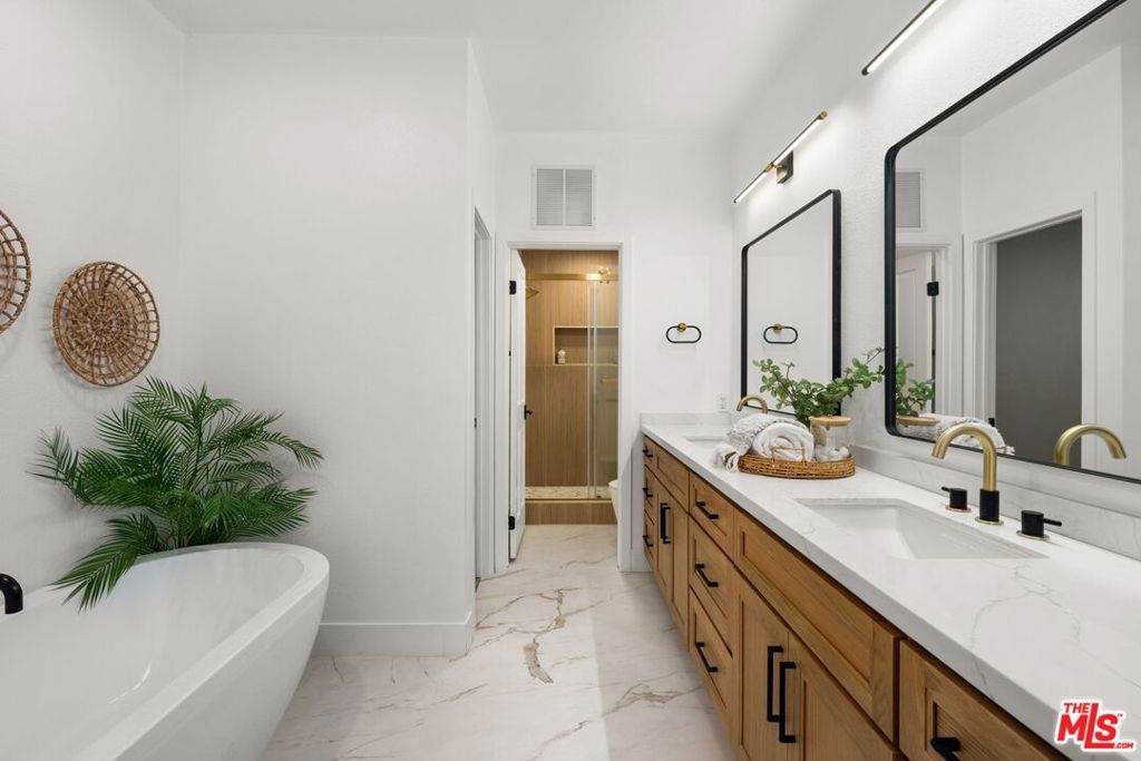 Step into modern luxury with this fully renovated, light-filled two-bedroom, two and a half-bathroom condo, offering over 1,700 square feet of elegant single-level living in one of Westwood's most desirable locations. This turnkey residence blends sophisticated design with contemporary comforts, featuring high-end finishes and an expansive wraparound balcony that extends your living space into the outdoors. Inside, you'll find a bright and airy open floor plan with brand-new luxury vinyl flooring, complementing the condo's fresh white and neutral tones. The spacious living room is a showstopper, anchored by a stunning marble fireplace, perfect for cozy evenings and entertaining guests. Floor-to-ceiling glass doors lead to the oversized balcony, flooding the space with natural light and creating a seamless indoor-outdoor flow. The gourmet kitchen has been completely redesigned, boasting Calcutta quartz countertops, custom Oak luxury wood cabinetry, and high-end stainless steel appliances. A large dining room opens to the kitchen, making it perfect for hosting and everyday living. The primary suite is a true retreat, featuring its own private balcony, a generous walk-in closet, and a spa-like en-suite bath with dual vanities, quartz counters, and a luxurious glass-enclosed shower. The spacious secondary bedroom also offers ample closet space and an en-suite bath with high-end finishes. Located in the heart of Westwood, this condo places you just minutes from UCLA, Westwood Village, Century City, and Beverly Hills. Enjoy easy access to world-class dining, shopping, entertainment, and top-rated schools. The building offers secure entry, well-maintained common areas, and assigned parking. Don't miss this rare opportunity to own a fully renovated, move-in-ready condo in one of LA's most sought-after neighborhoods!