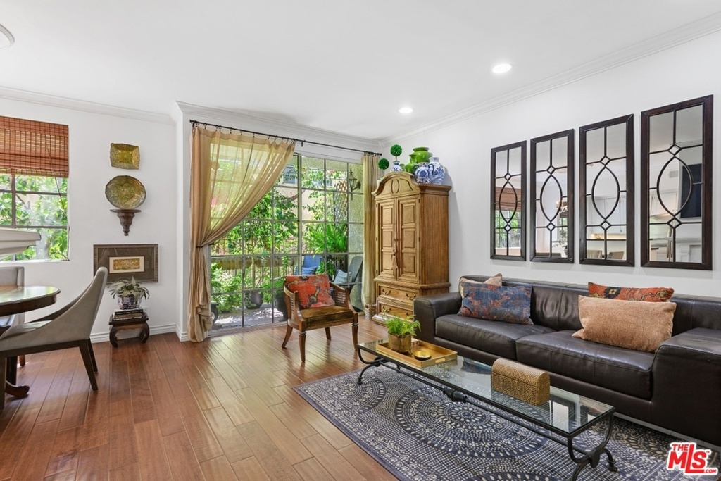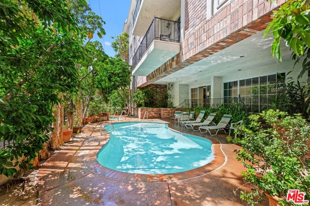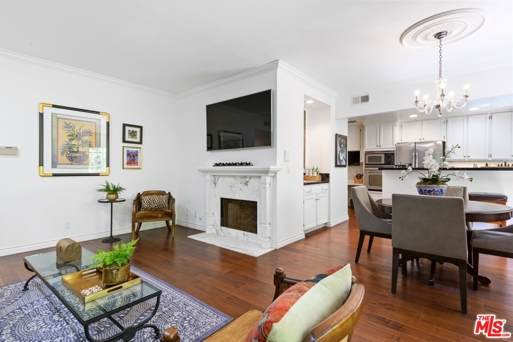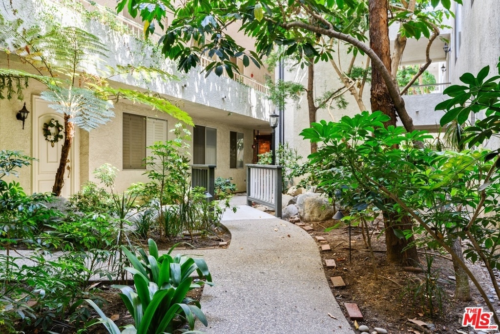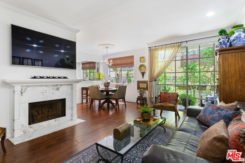 Exquisitely remodeled condo in a charming courtyard building in prime Westwood location with close proximity to Century City, Westwood Village, parks, shops, restaurants, theaters, 405 Fwy access, UCLA & proposed new Google Campus. Enter this stunning unit through the tranquil courtyard surrounded by green foliage, serene stream & bridged walkway. The open floor plan with formal entry features high ceilings, crown molding & recessed lighting throughout. Spacious living/dining area with rich wood flooring, fireplace & French sliding glass doors open to a large balcony overlooking the lush greenery. Gourmet eat-in kitchen with granite countertops, stainless steel appliances & breakfast bar. Sophisticated master suite with plantation shutters, walk-in closet & elegant en-suite bath with dual sink vanity. Spacious 2nd bedroom. In-unit washer & dryer. Central A/C & heat. HOA dues include EQ Insurance. Quality building features a pool, spa, gym, rec room, ample guest parking & extra storage.