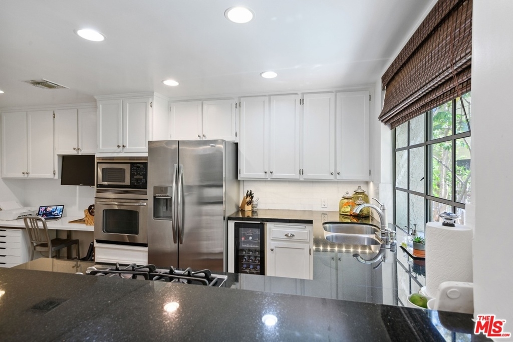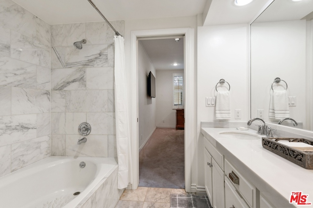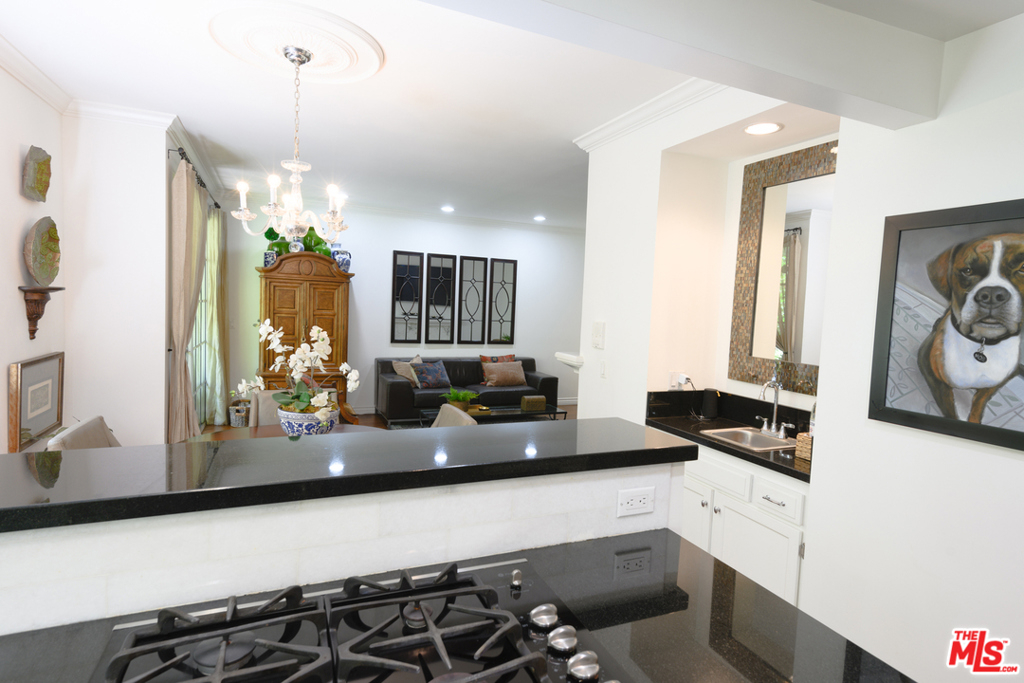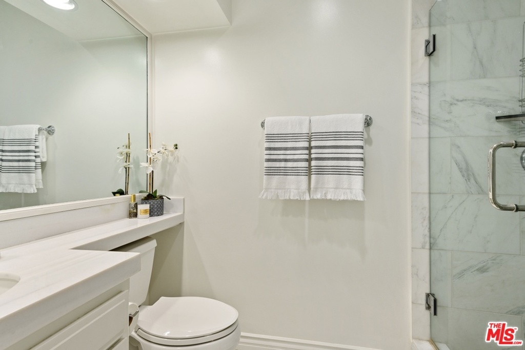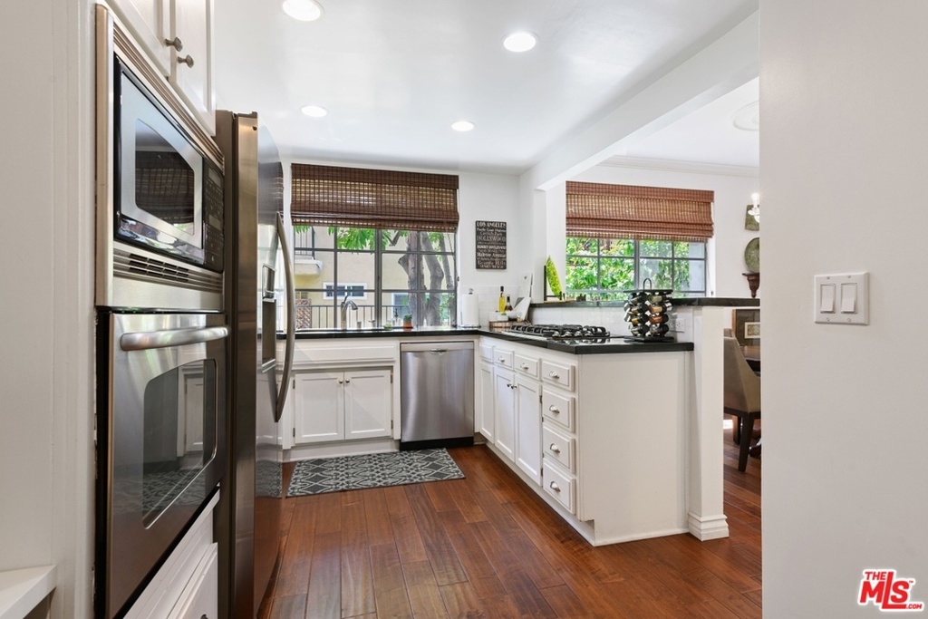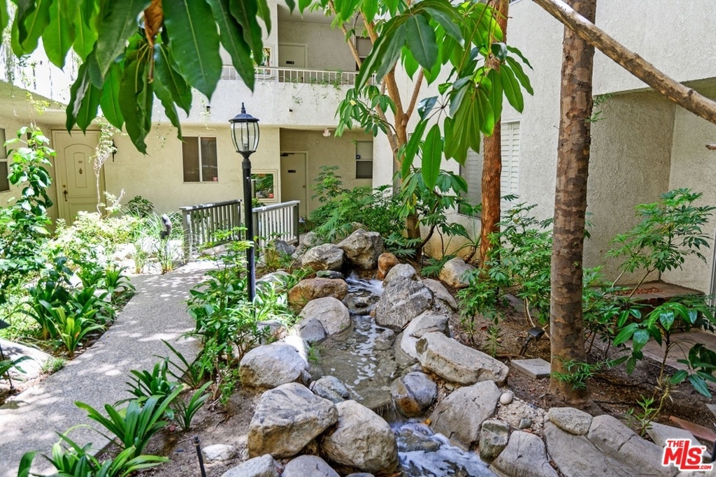 Exquisitely remodeled condo in a charming courtyard building in prime Westwood location with close proximity to Century City, Westwood Village, parks, shops, restaurants, theaters, 405 Fwy access, UCLA & proposed new Google Campus. Enter this stunning unit through the tranquil courtyard surrounded by green foliage, serene stream & bridged walkway. The open floor plan with formal entry features high ceilings, crown molding & recessed lighting throughout. Spacious living/dining area with rich wood flooring, fireplace & French sliding glass doors open to a large balcony overlooking the lush greenery. Gourmet eat-in kitchen with granite countertops, stainless steel appliances & breakfast bar. Sophisticated master suite with plantation shutters, walk-in closet & elegant en-suite bath with dual sink vanity. Spacious 2nd bedroom. In-unit washer & dryer. Central A/C & heat. HOA dues include EQ Insurance. Quality building features a pool, spa, gym, rec room, ample guest parking & extra storage.