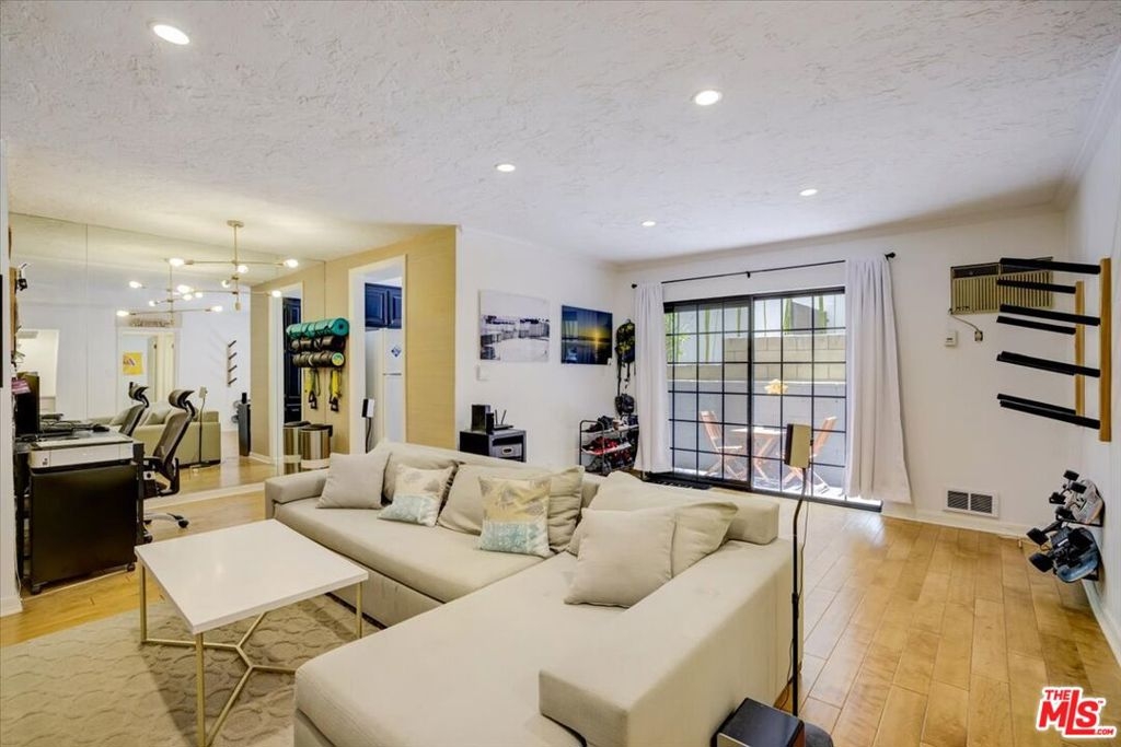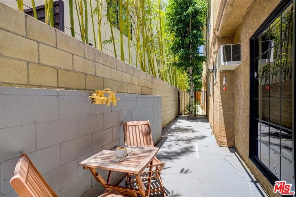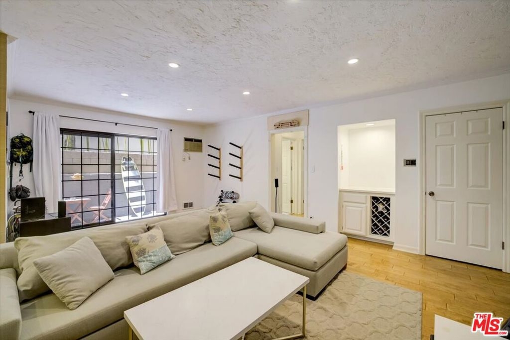 Experience the allure of this Westwood condo featuring a unique private access into the unit. Step inside to discover the inviting living space adorned with wood flooring, recessed lighting, and complemented by a built-in wine bar. The living room flows effortlessly to the dining area, and opens up to a spacious privately enclosed patio. Enjoy the kitchen which has a sunlit bay window, built in microwave and tiled countertops. The large bedroom offers a walk-in closet, while the full bathroom accommodates a washer and dryer. There's also a rooftop access with incredible city and mountain views. You can enter the unit through the side gate from the private driveway that fits 2 cars or from the front entrance of the building. This location offers easy access to trendy restaurants, boutique shops, international grocery stores, Westwood Village, UCLA, and freeway.