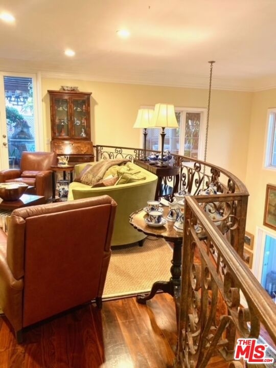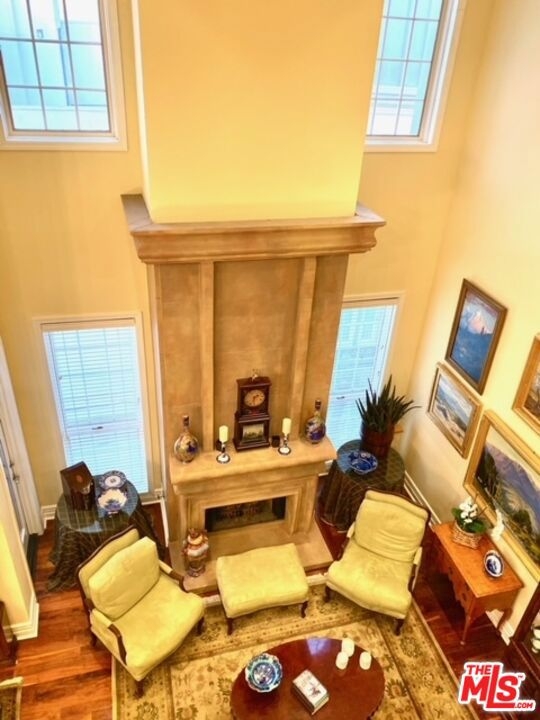 ONE OF A KIND UNIT! Twenty-two foot ceilings in living room and dining area. Ten foot ceilings throughout. Three quarter inch solid American walnut floors. Travertine floors. Master bathroom with walk-in closet, spa tub and rain shower. Large loft overlooking living room and dining area leading to large 450 SF private sun deck. Extra storage units in parking area and in storage locker. Complex has gym, sauna and spa. Twelve guest parking spaces. Complex has earthquake insurance.