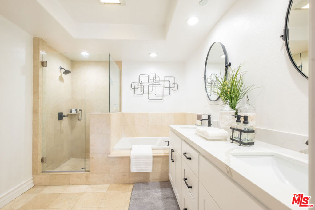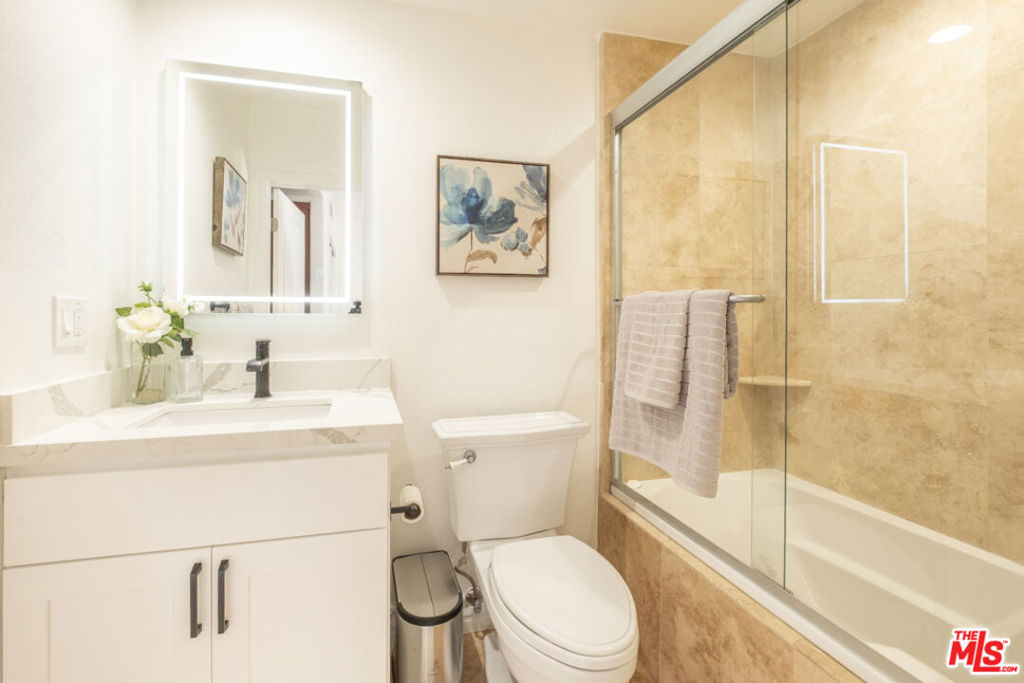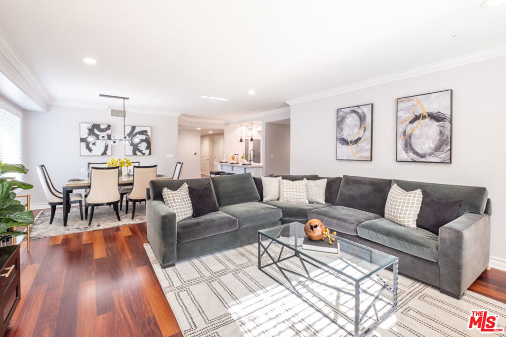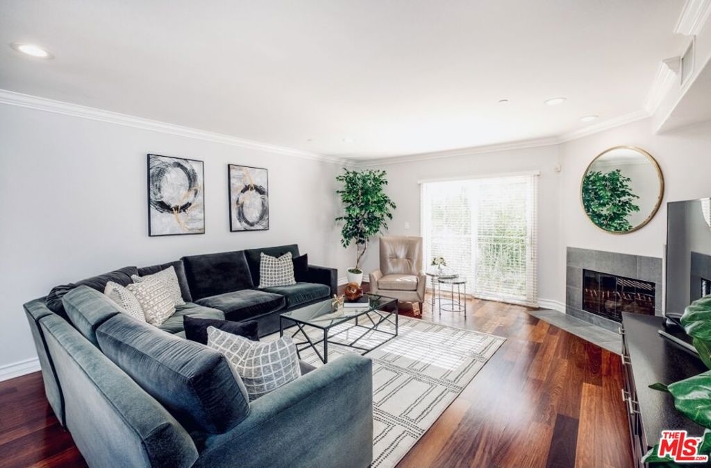 This Whimsical Westwood Remodel is a sprawling single-family alternative featuring 3 bedrooms (each w/ an en suite bath) & a 4th guest bathroom in 1,714sf of living space. This updated front-facing unit boasts of new plush carpet in bedrooms, recessed & designer lights, elegant engineered wood floors, AC, fresh paint throughout & crown moldings. The newly remodeled kitchen anchors this contemporary condo with sleek stainless appliances, crisp white cabinets, monochromatic decorative tile backsplash, oversized tile flooring and quartz counters that extend to a beautiful breakfast bar open to the formal dining & living room. This well composed space further features generous natural light, 2 private patios, a Juliet balcony & a cozy fireplace in the living room. Located minutes away from world class Beverly Hills/Century City shopping & entertainment as well as the new Google office campus at the former Westside Pavilion site. There are in-unit side-by-side laundry hookups, 2 tandem garage spaces & a storage locker available in this well maintained 15-unit complex built in 2006. HOA covers common area maintenance, trash and boiler. All other utilities are individually metered.